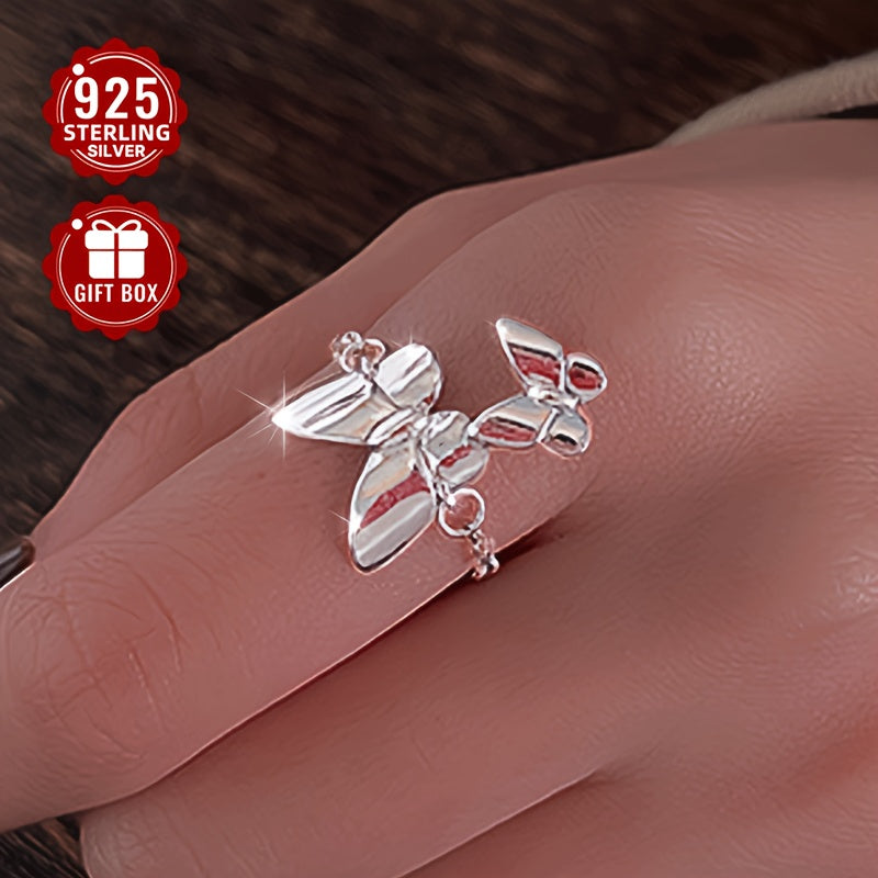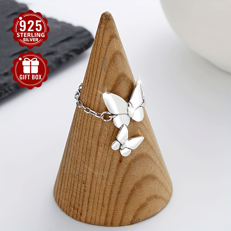 This elegant ring features a double butterfly design with a tassel chain pull. It is made of pure s925 silver with a low allergy index, making it suitable for sensitive skin.