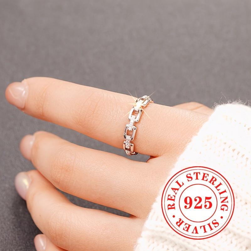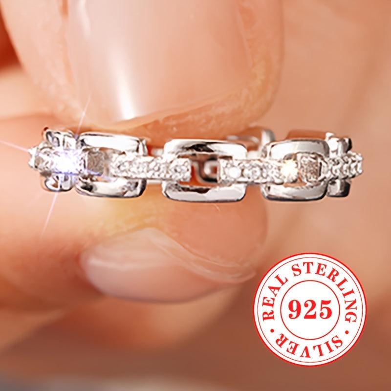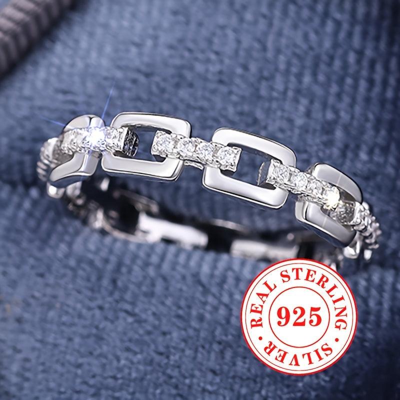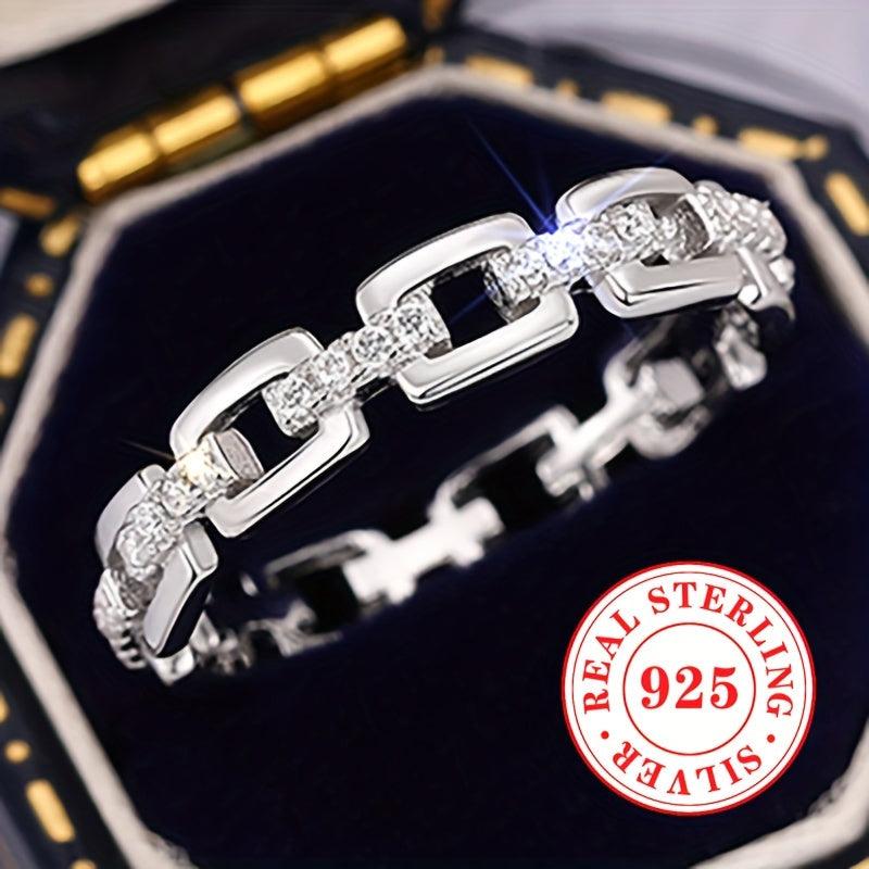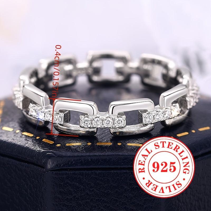 Elegant and stylish chain ring featuring zirconia for party or casual wear. Made of pure S925 silver without box.