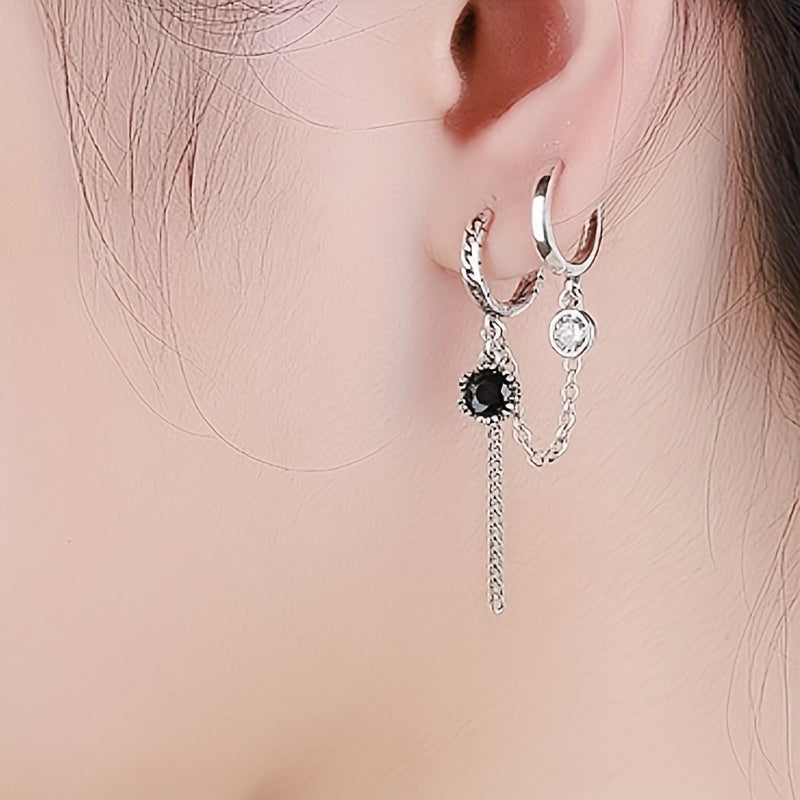 These elegant earrings are perfect for banquets and parties. Made of high-quality S925 sterling silver, they feature a double buckle design with tassel chains, adding a touch of sophistication to any outfit.