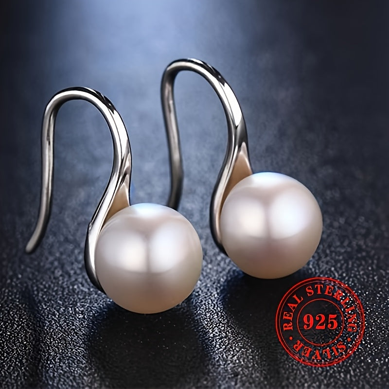 Elegant and chic, these sterling silver earrings feature imitation pearls that add a touch of sophistication to your look. Perfect for weddings or parties.