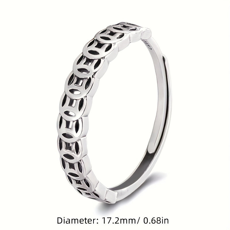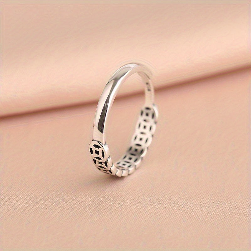 This stylish ring features a retro coin design made of 925 sterling silver. The lucky money coin brings good fortune and a unique charm to your look.