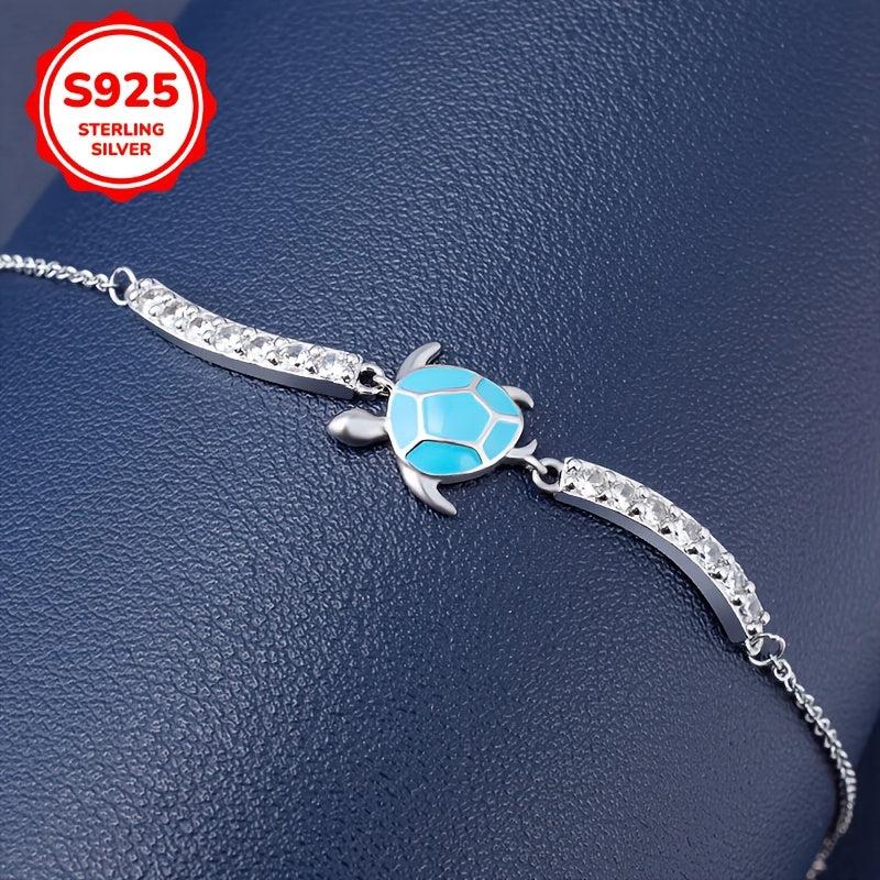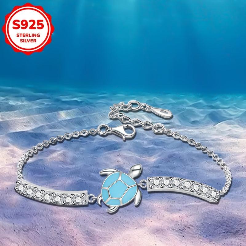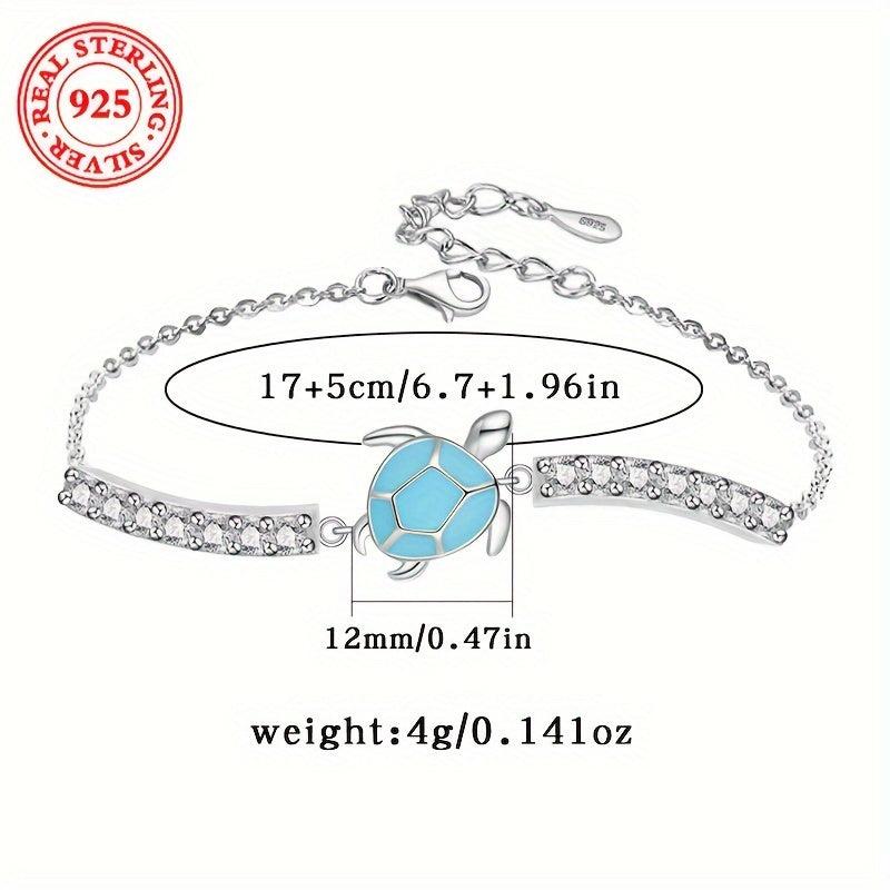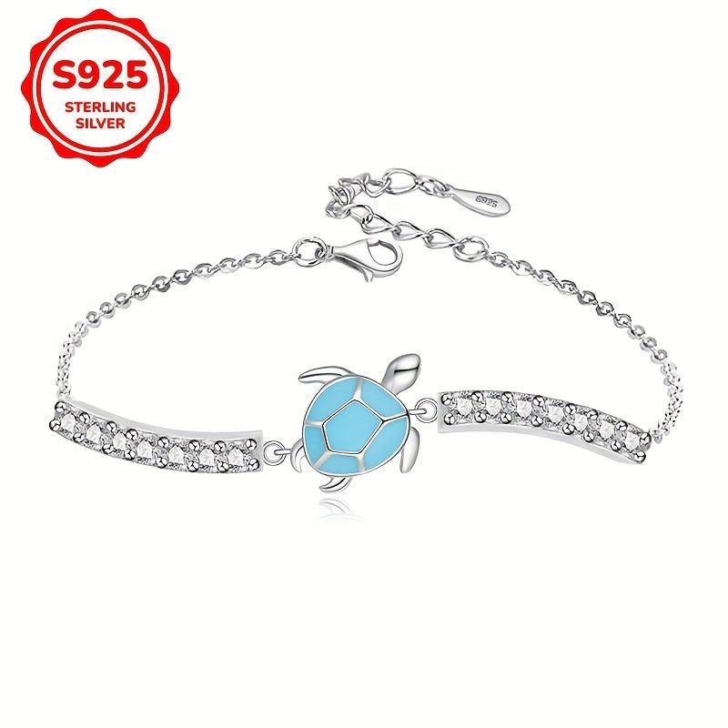 S925 Sterling Silver Sea Turtle Bracelet with CZ Ocean Jewelry
