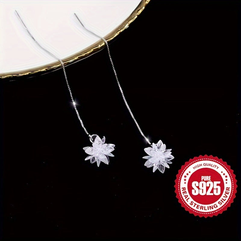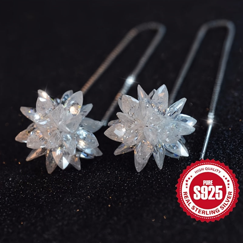 These stunning S925 sterling silver tassel earrings feature synthetic zirconia for a glamorous look. Hypoallergenic and perfect for weddings or as a gift.