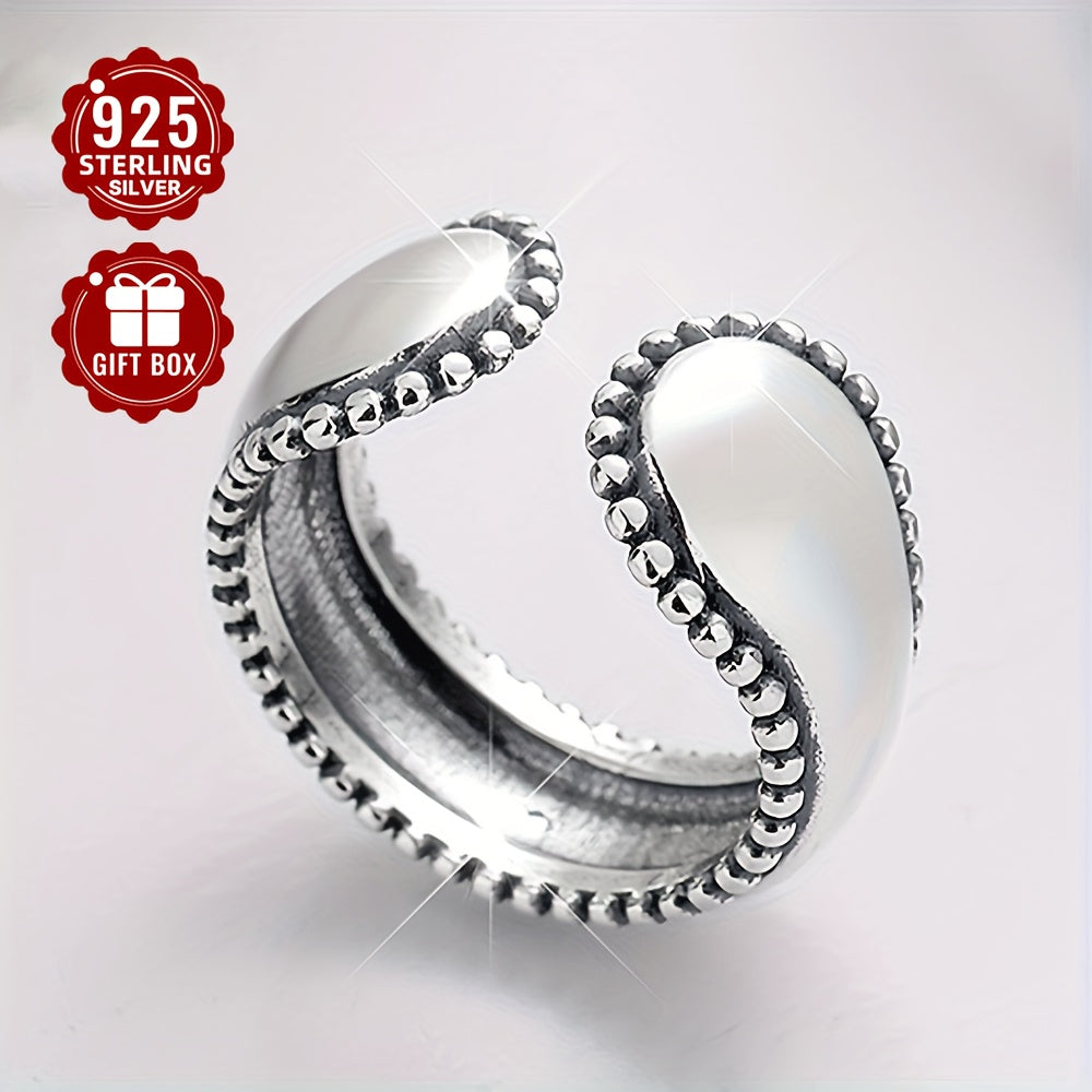 This elegant S925 sterling silver ring features a textured glossy twist lace design. It is suitable for both men and women and perfect for party gatherings. Weighs around 5-7g.