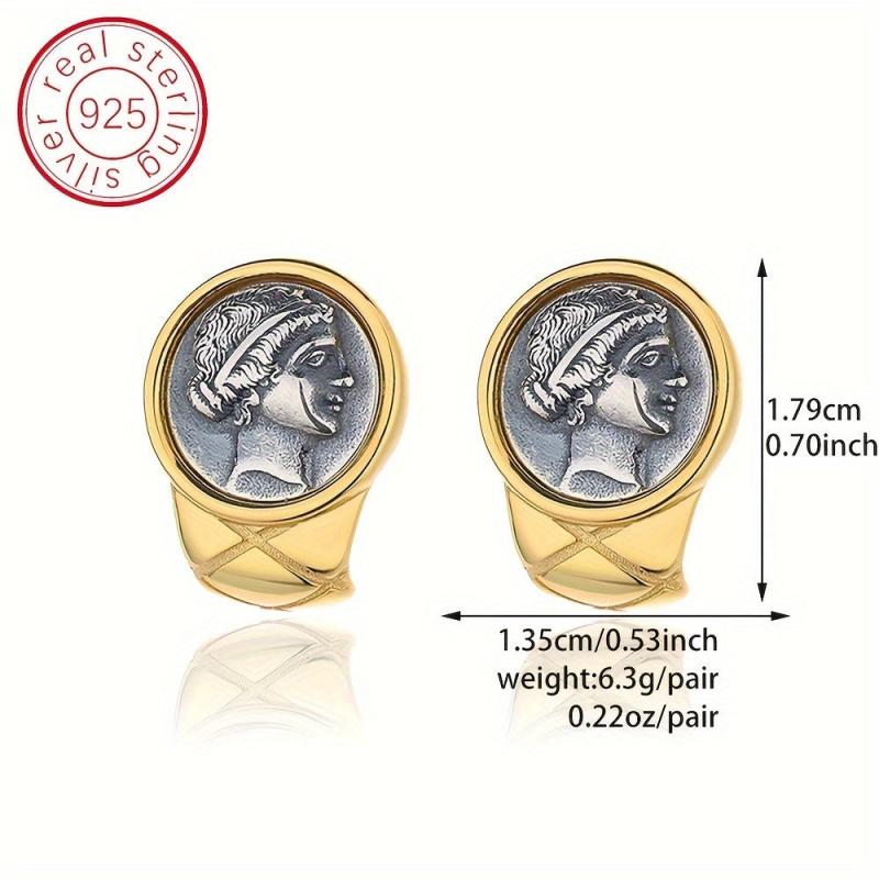 S925 Sterling Silver Warrior Coin Earrings for Everyday Wear