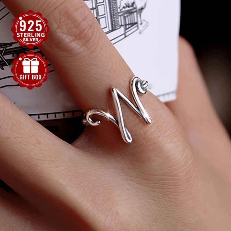 This S925 sterling silver wide ring featuring the letter W is perfect for daily wear and travel. Weighing 2.13g, it is a stylish and versatile accessory.