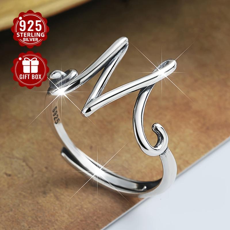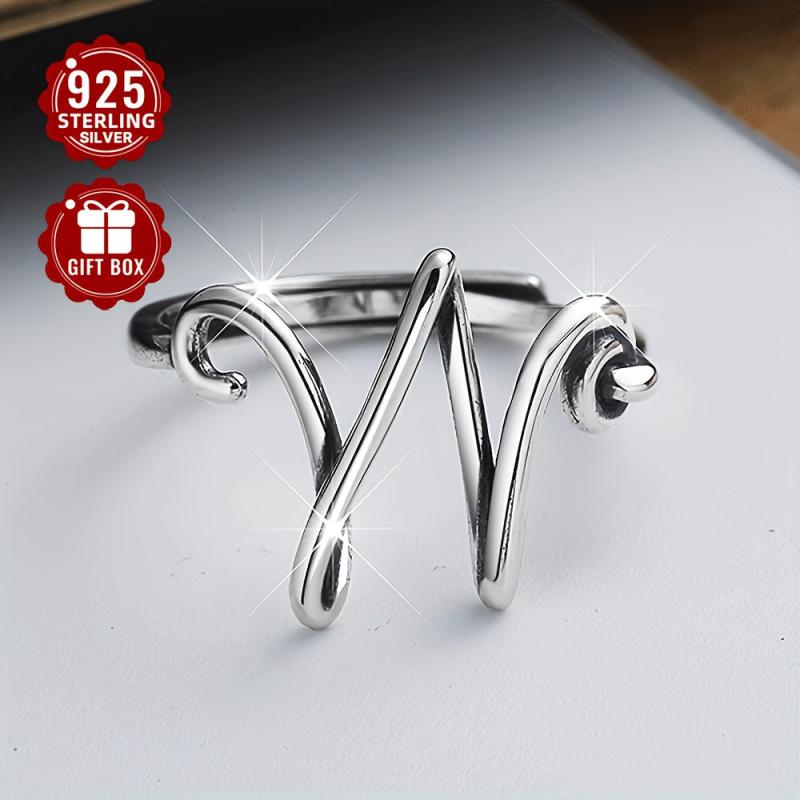 S925 Sterling Silver Wide Ring with Letter W - Minimalist & Versatile