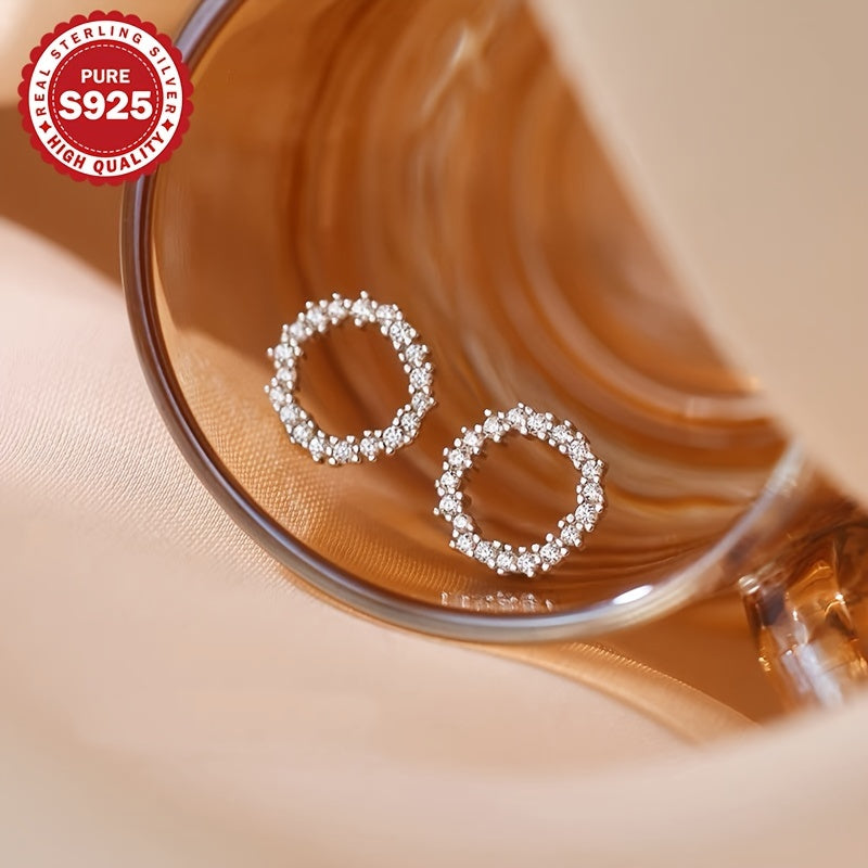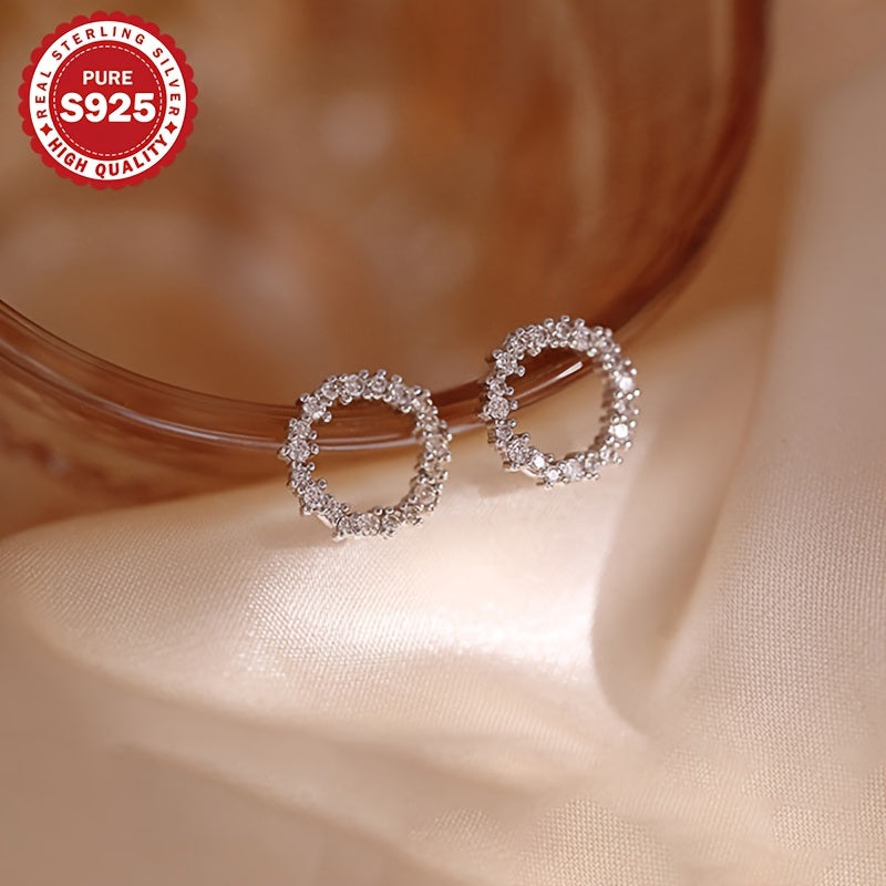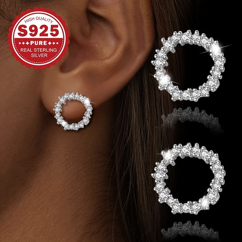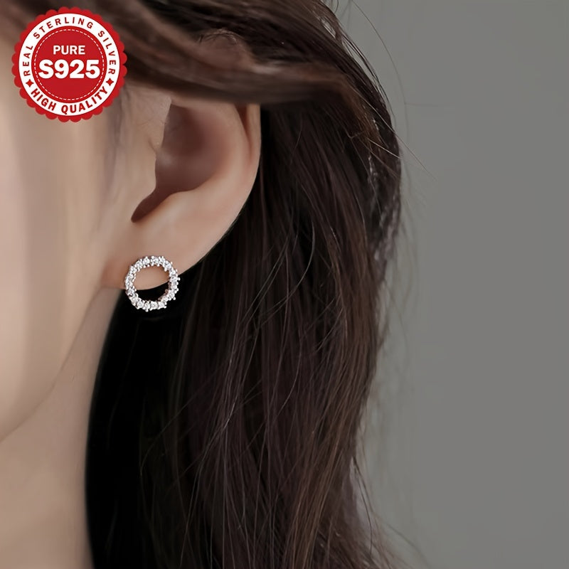 These elegant stud earrings feature a circle design with sparkling zirconia stones. Made from hypoallergenic S925 sterling silver, they are perfect for daily wear and make a great gift for any occasion, including Mardi Gras celebrations.