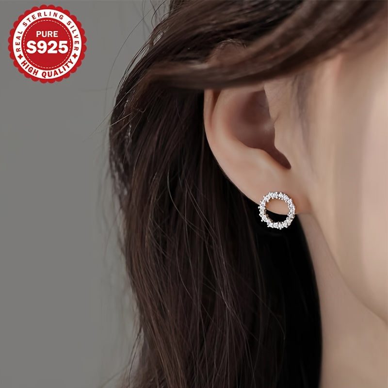 S925 Sterling Silver Zirconia Circle Stud Earrings - Allergy Friendly