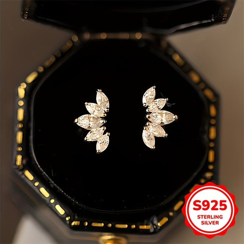 S925 Sterling Silver Zirconia Wing Earrings for Women