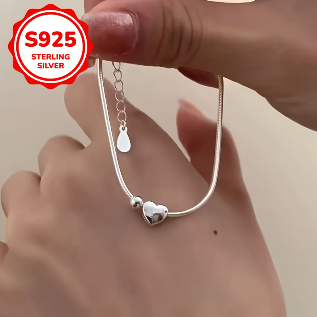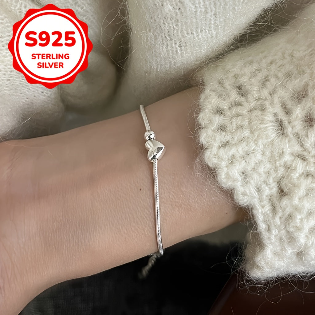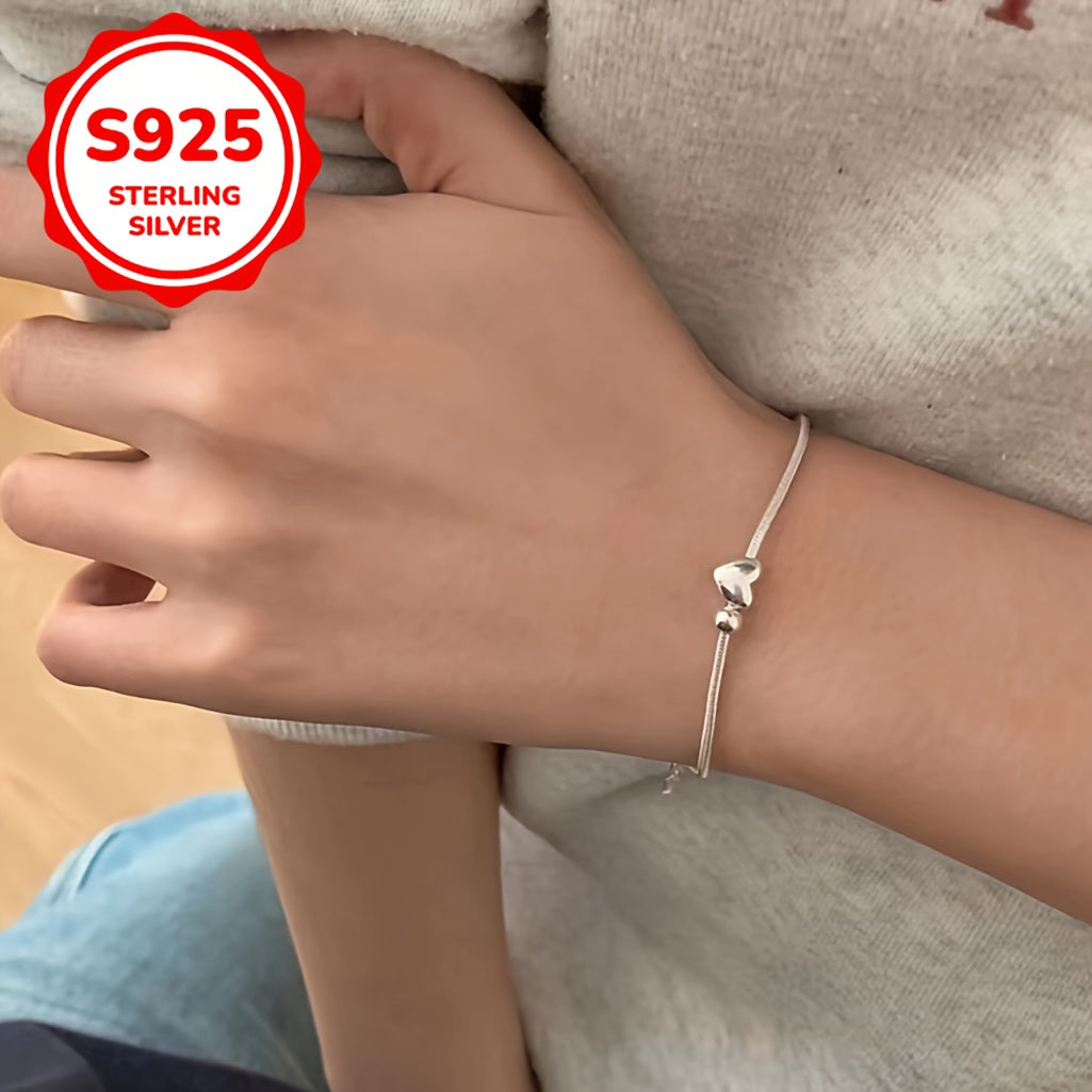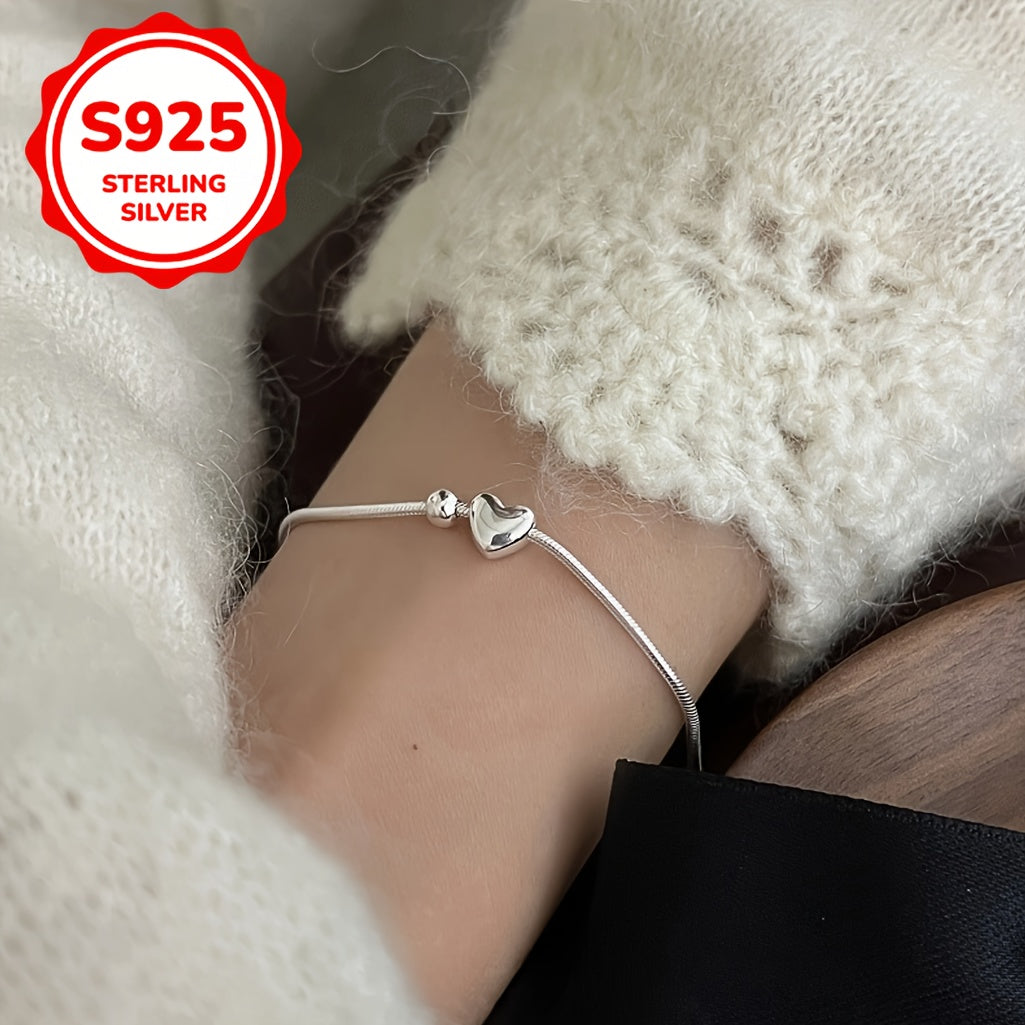 This silver 925 heart-shaped pendant bracelet features a retro tribal style with silvery plating. It is suitable for daily wear and party occasions, making it a perfect Christmas and anniversary gift.