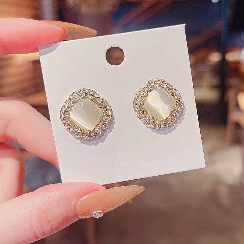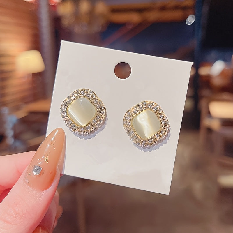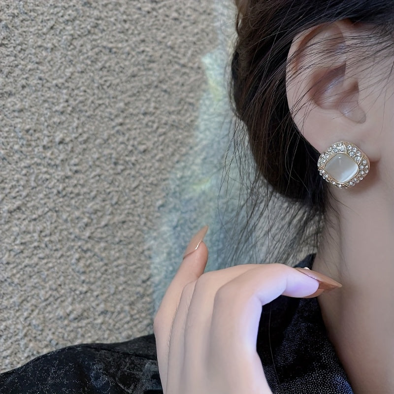 Add some sparkle to your outfit with these versatile square rhinestone earrings. Perfect for party wear or daily use, these ear studs are made of synthetic stone alloy with 925 sterling silver posts.