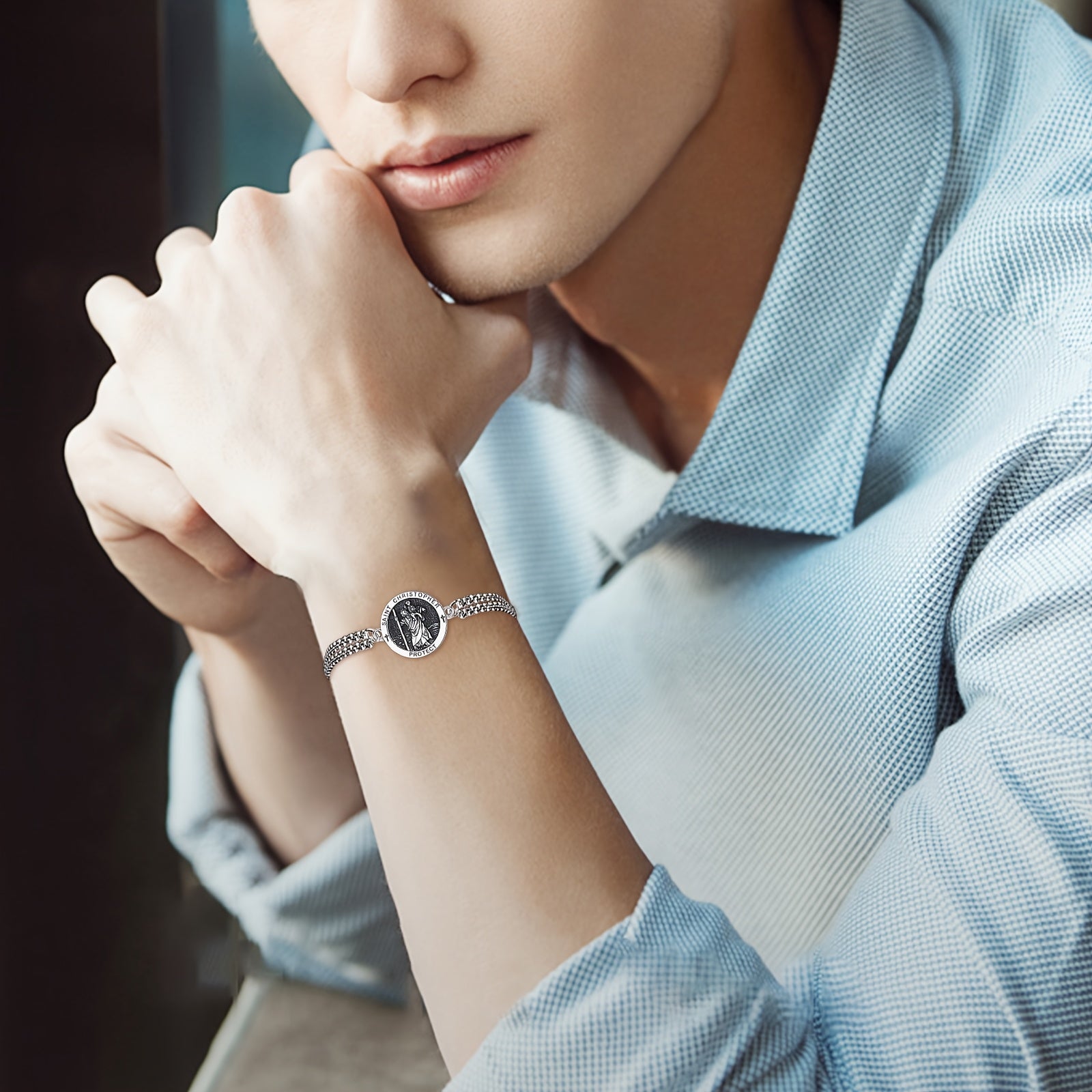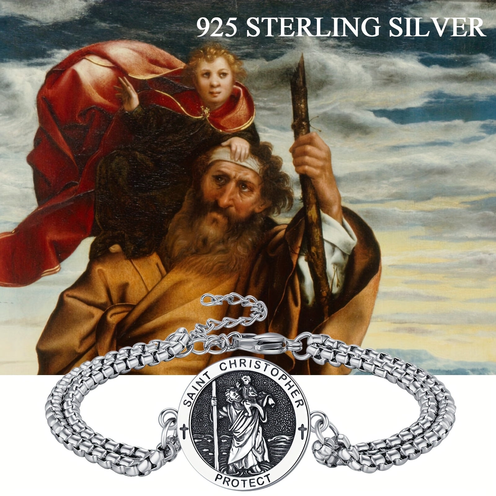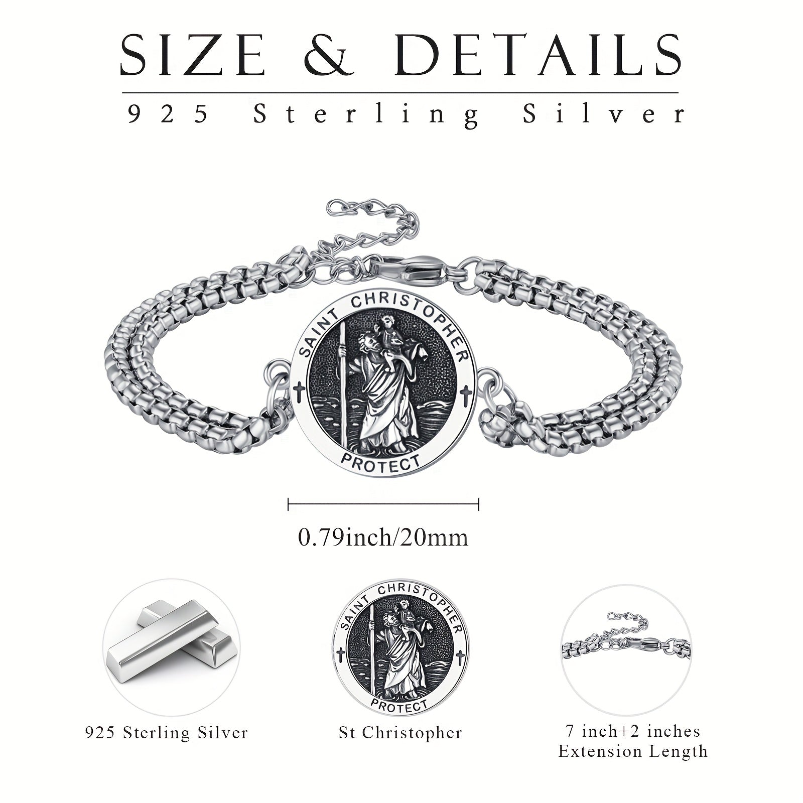 • 925 sterling silver St Christopher bracelet for men