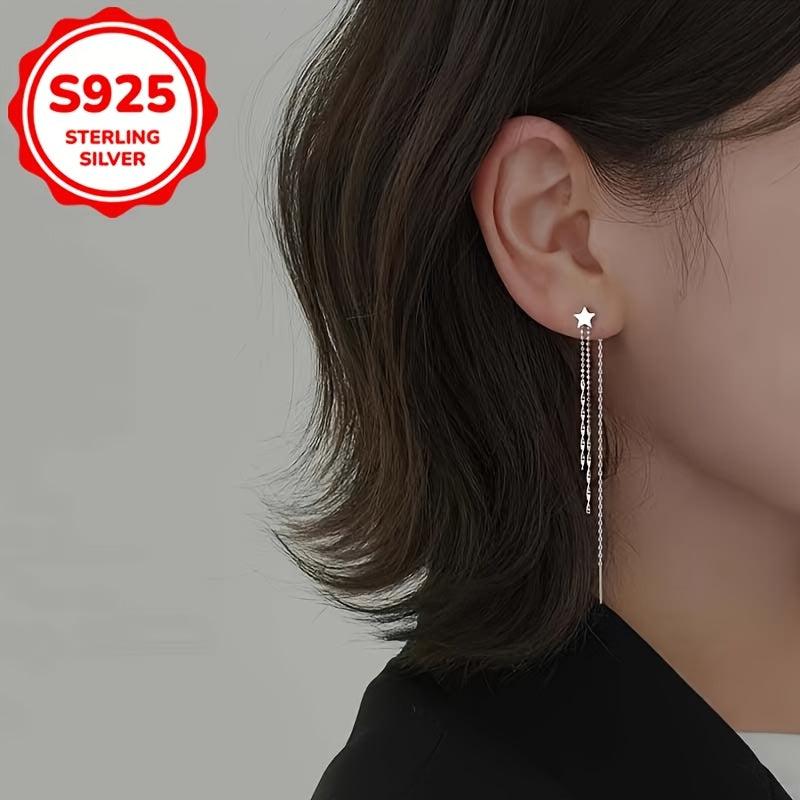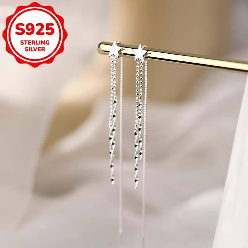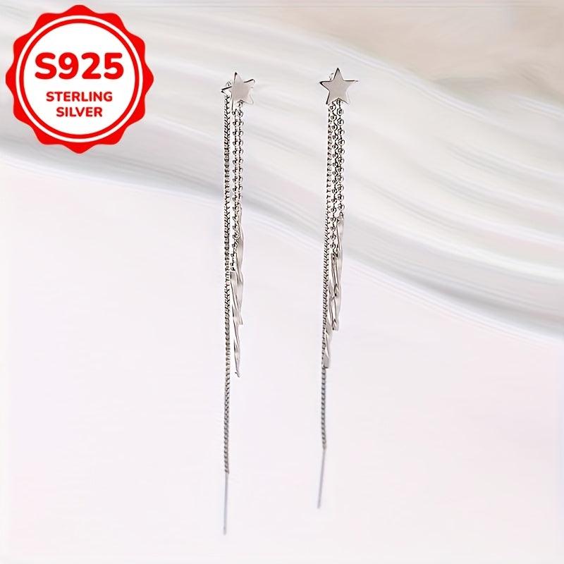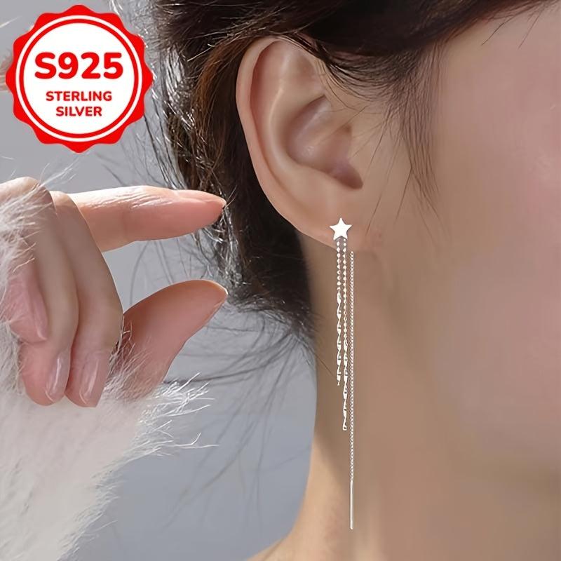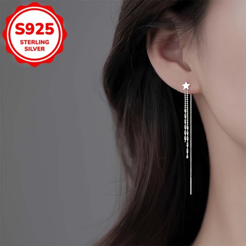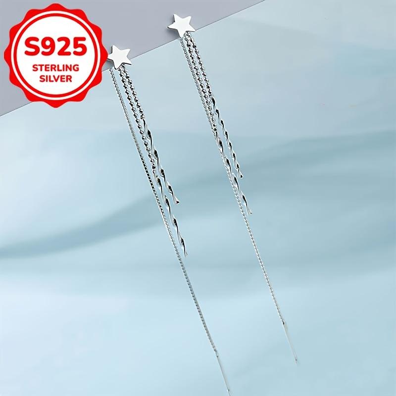 Add some sparkle to your look with these stylish drop earrings featuring star-shaped long tassels. Made of 4 grams of S925 silver, these earrings are perfect for everyday wear, parties, and vacations.