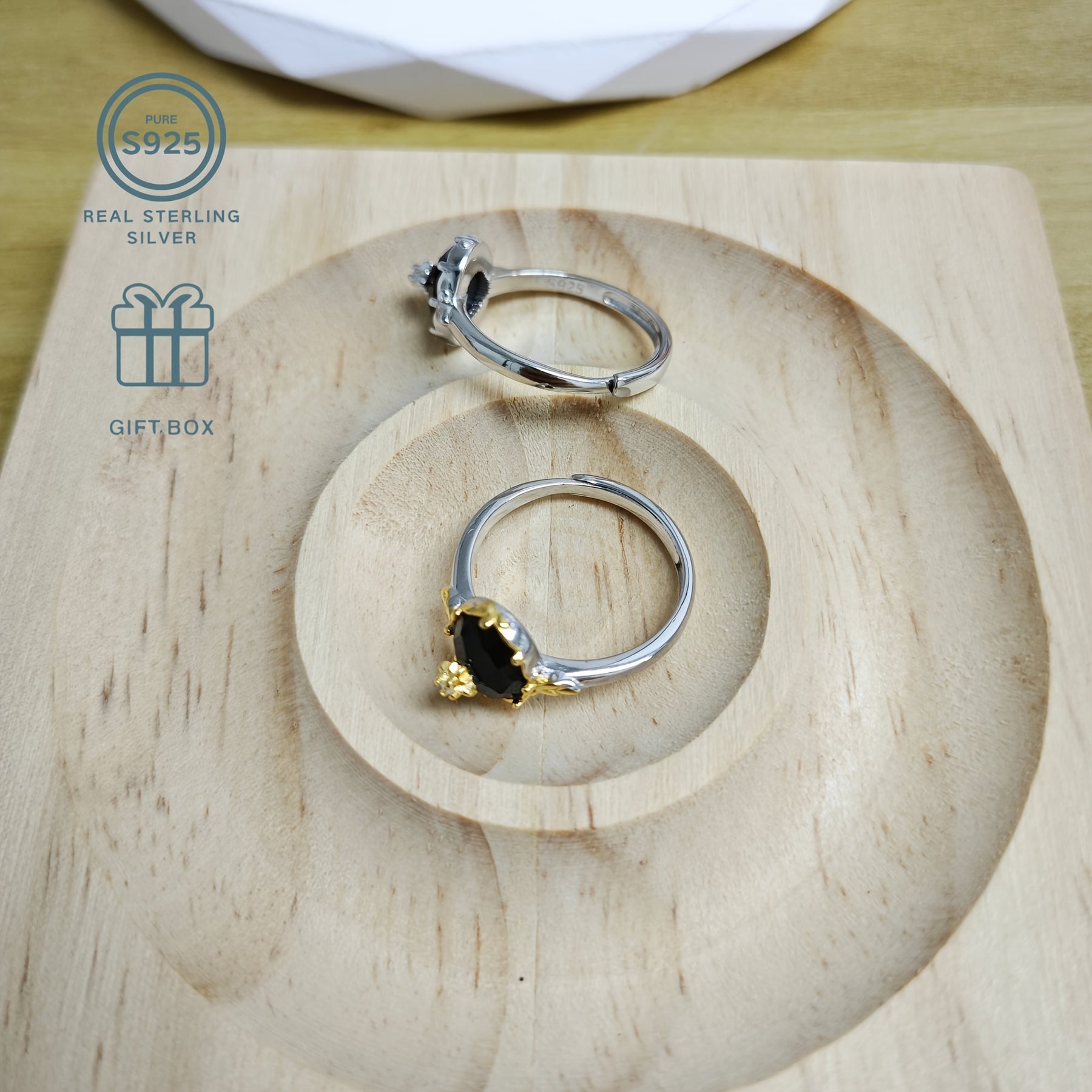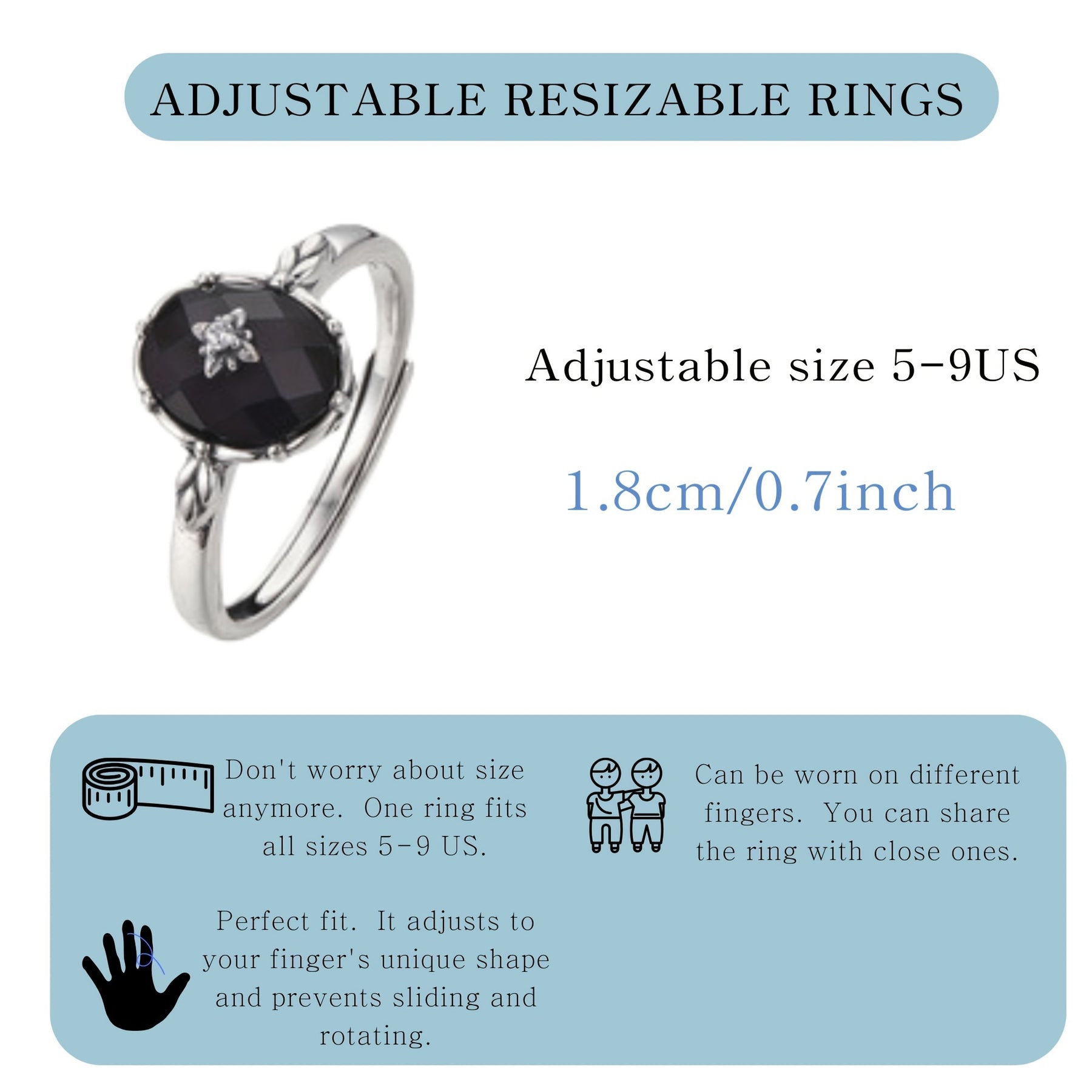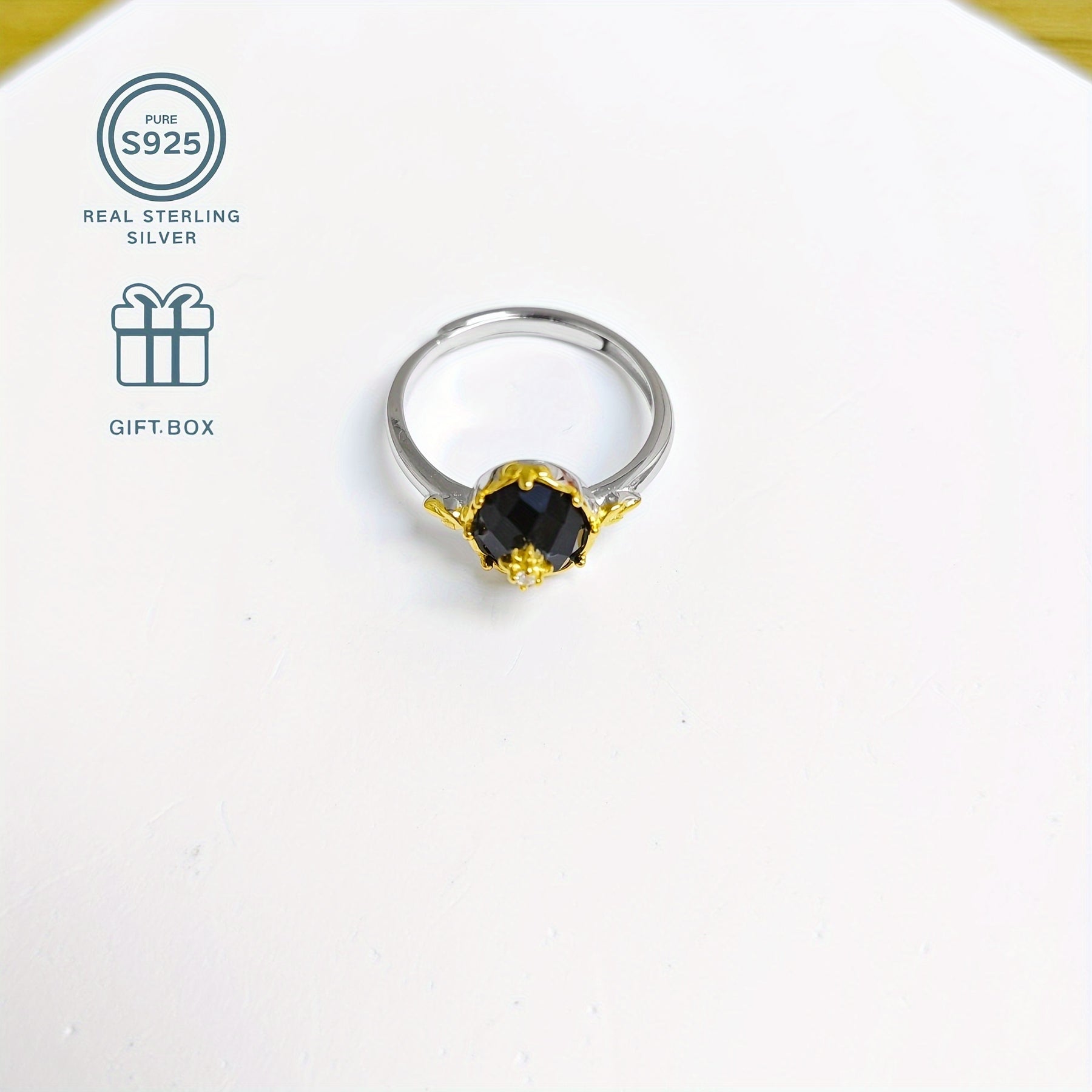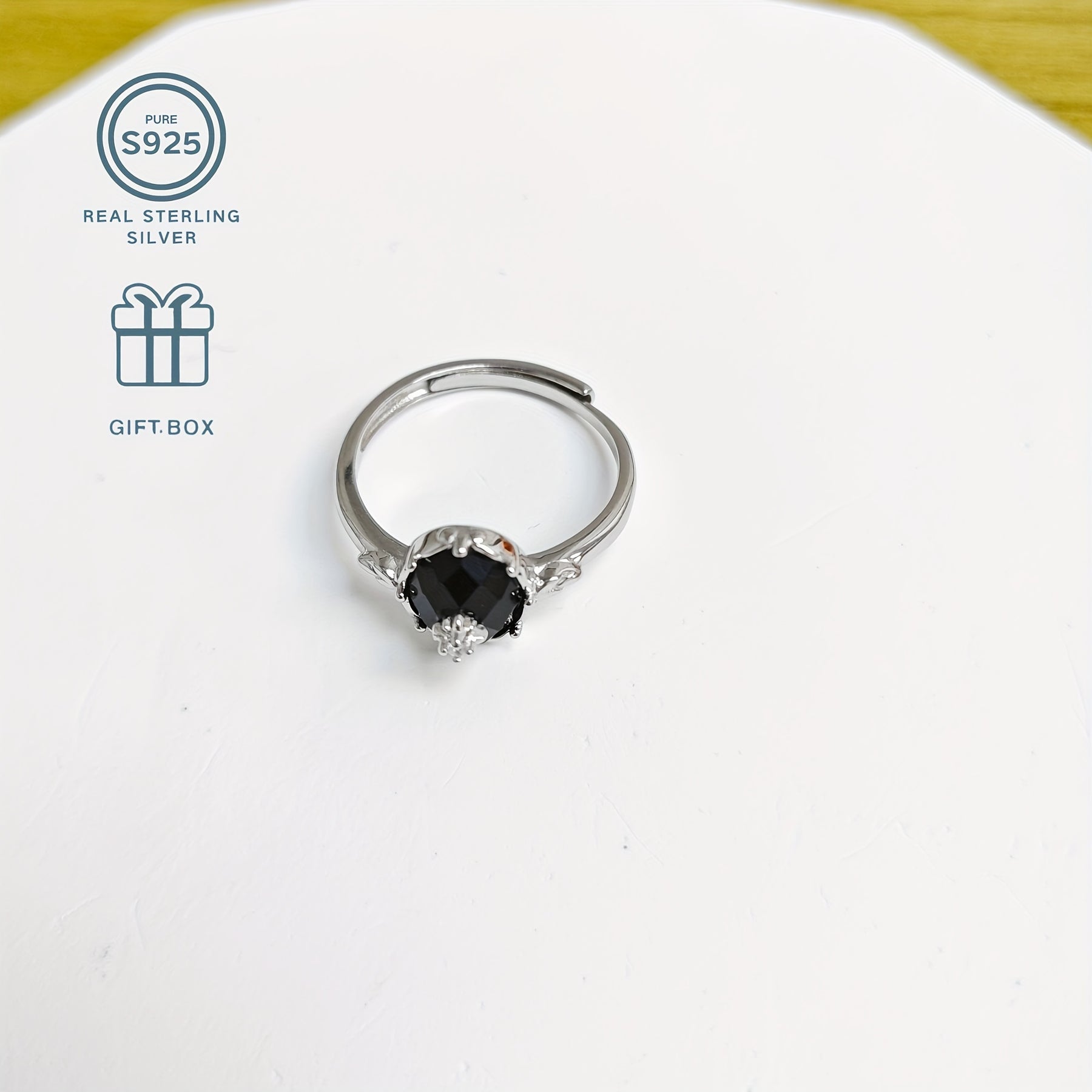 This stunning ring is made of S925 sterling silver, featuring a natural agate stone. It is hypoallergenic and perfect for daily wear or special occasions like graduation. The ring is adjustable to fit different sizes and sparkles elegantly.