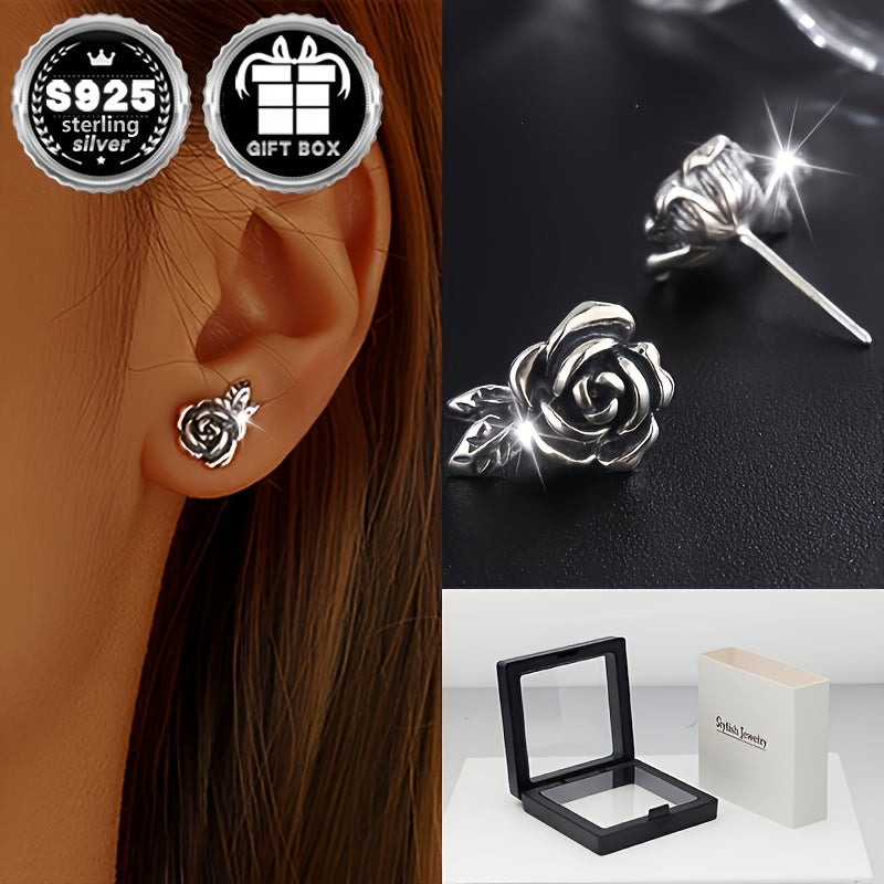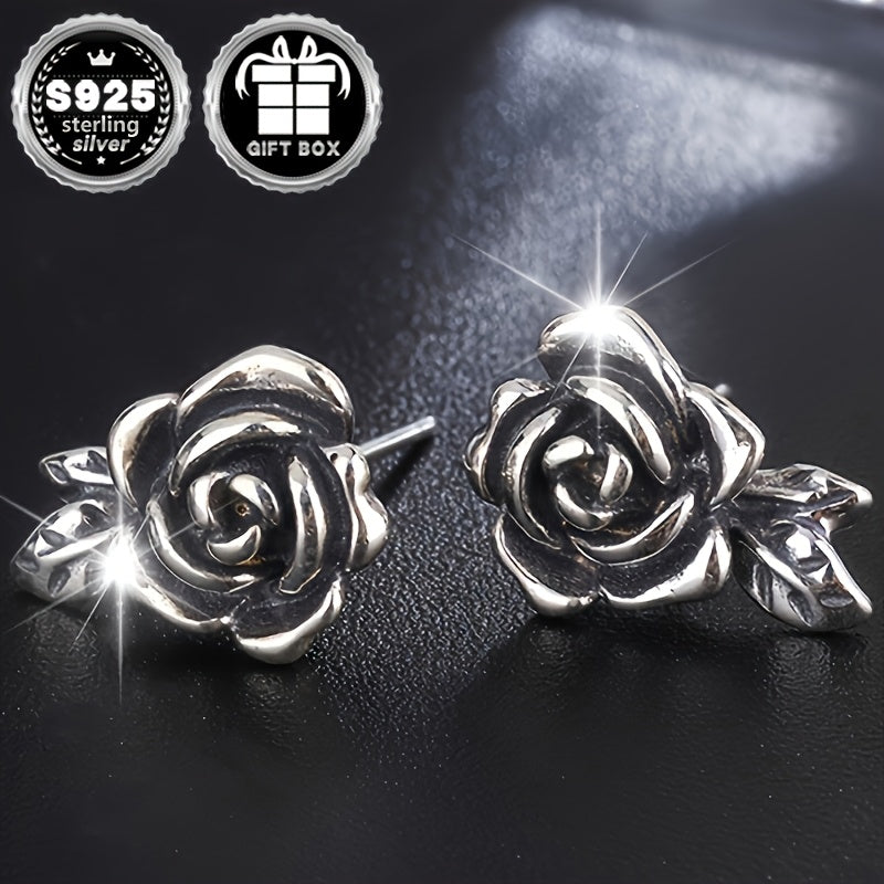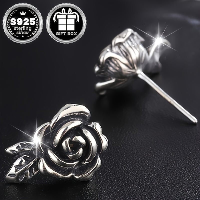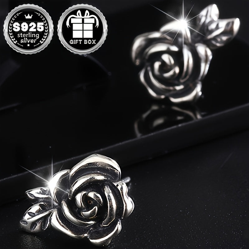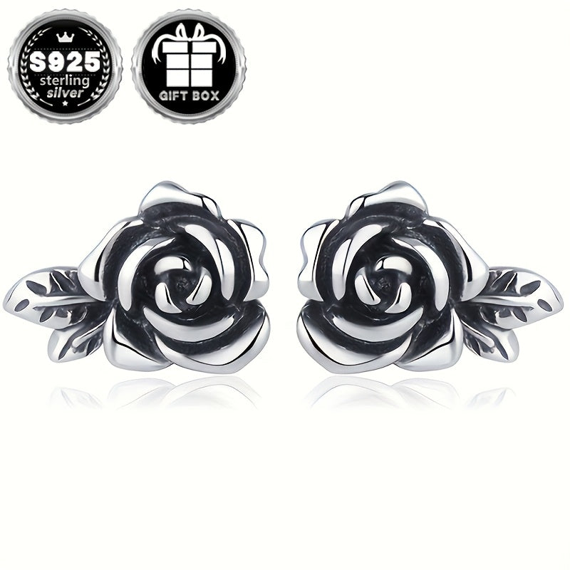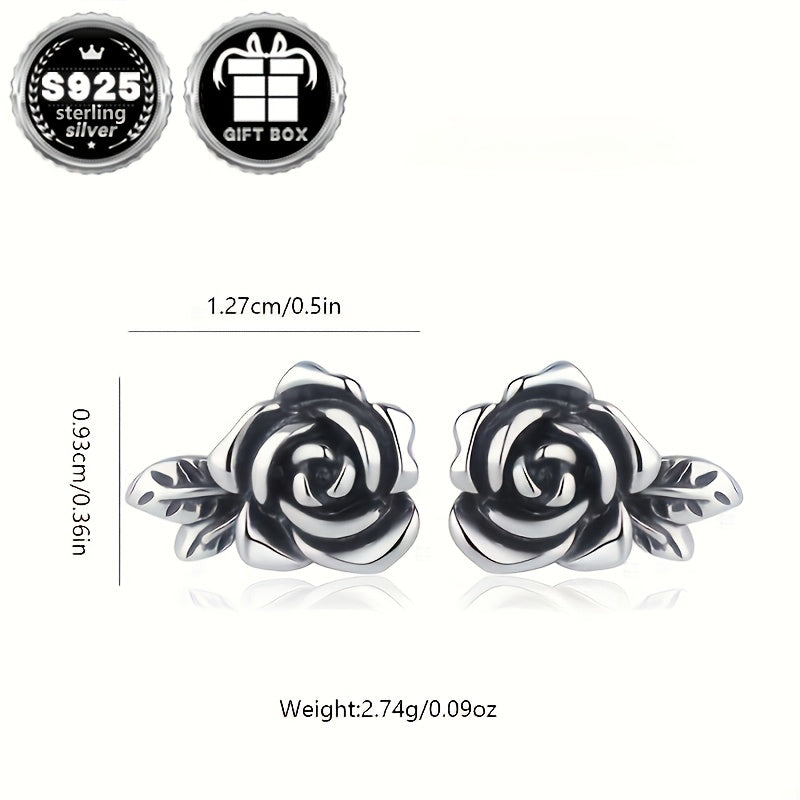 These hypoallergenic sterling silver stud earrings feature a dark rose design, perfect for a gothic style Halloween party. Total weight is about 2.74g.