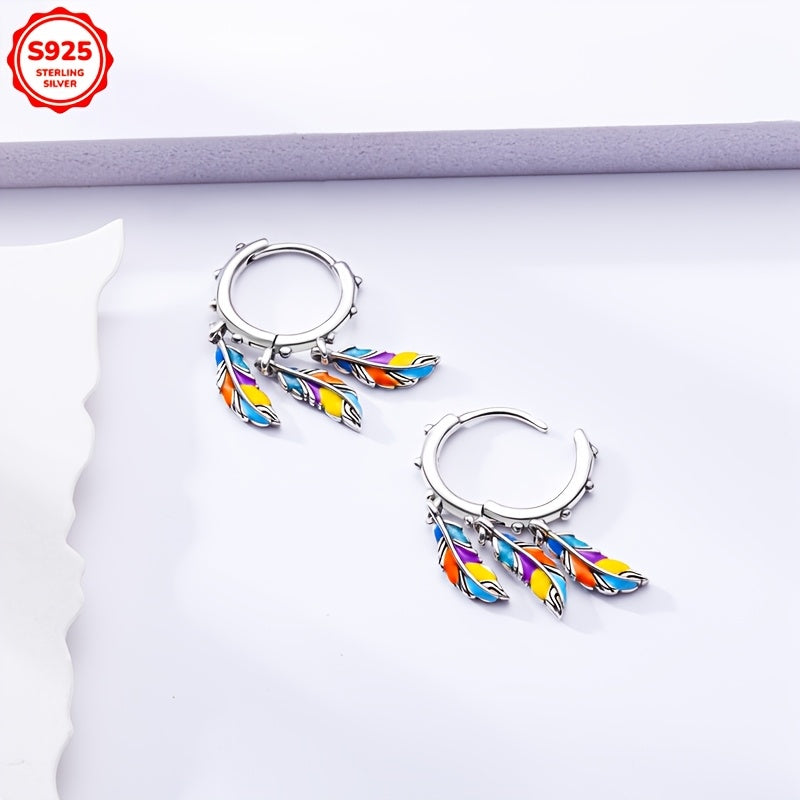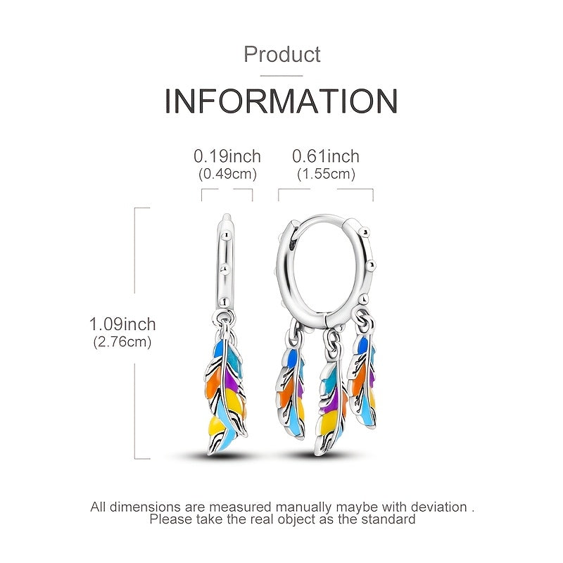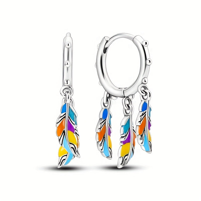 Sterling Silver Dreamcatcher Earrings with Colorful Feather Zirconia