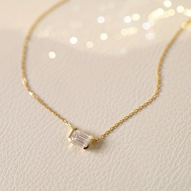 Elegant 925 sterling silver pendant necklace featuring a rectangular geometric design with a synthetic April birthstone zirconia. Perfect for daily wear or as a Valentine's Day gift.