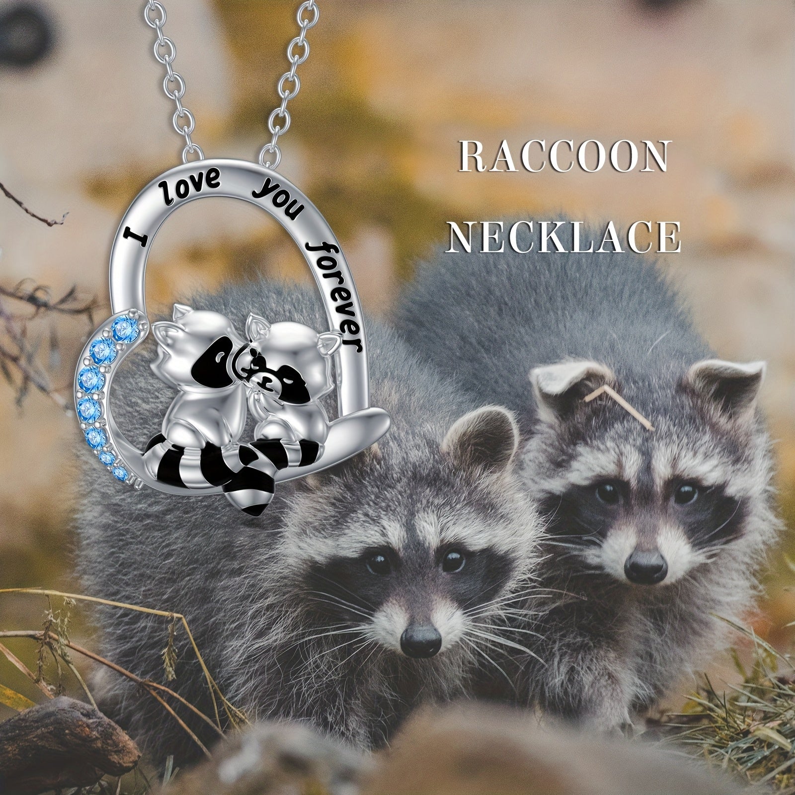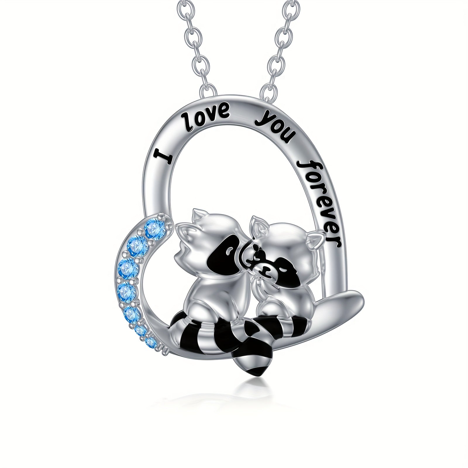 This adorable double raccoon necklace is made of 925 sterling silver with synthetic zirconia, perfect for women and teenage girls.