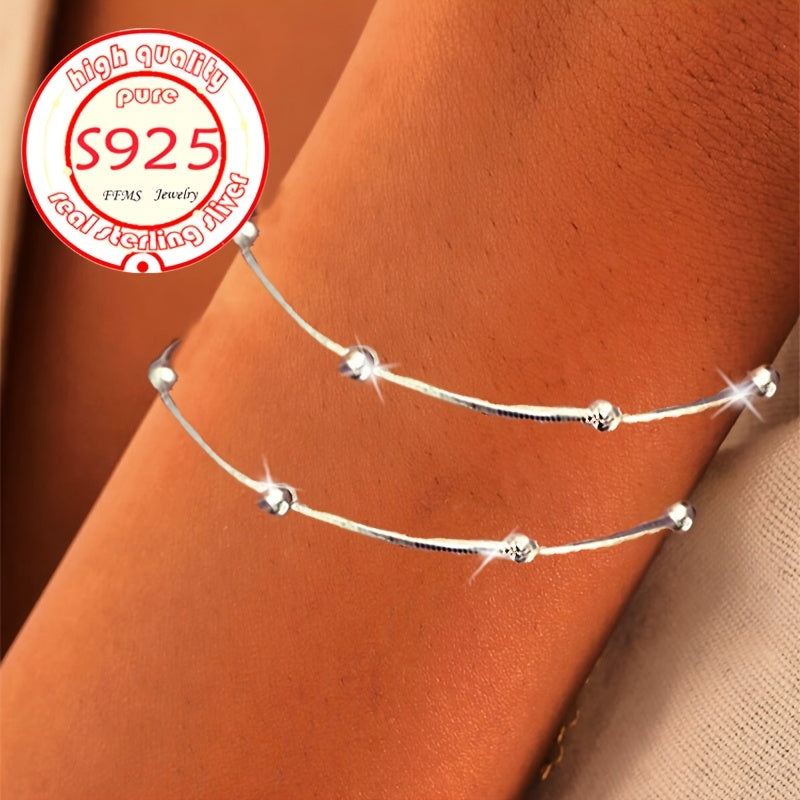 Elegant S925 silver bracelet with personalized design, featuring round beads and a snake motif. Lightweight at 3.2g, perfect for daily wear. A great gift option for ladies.