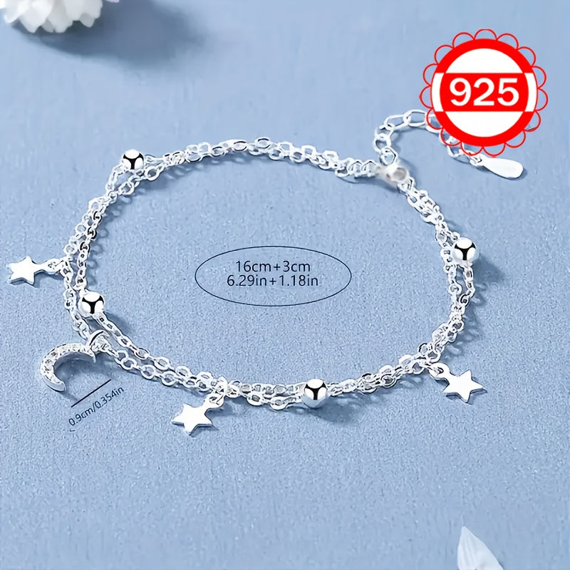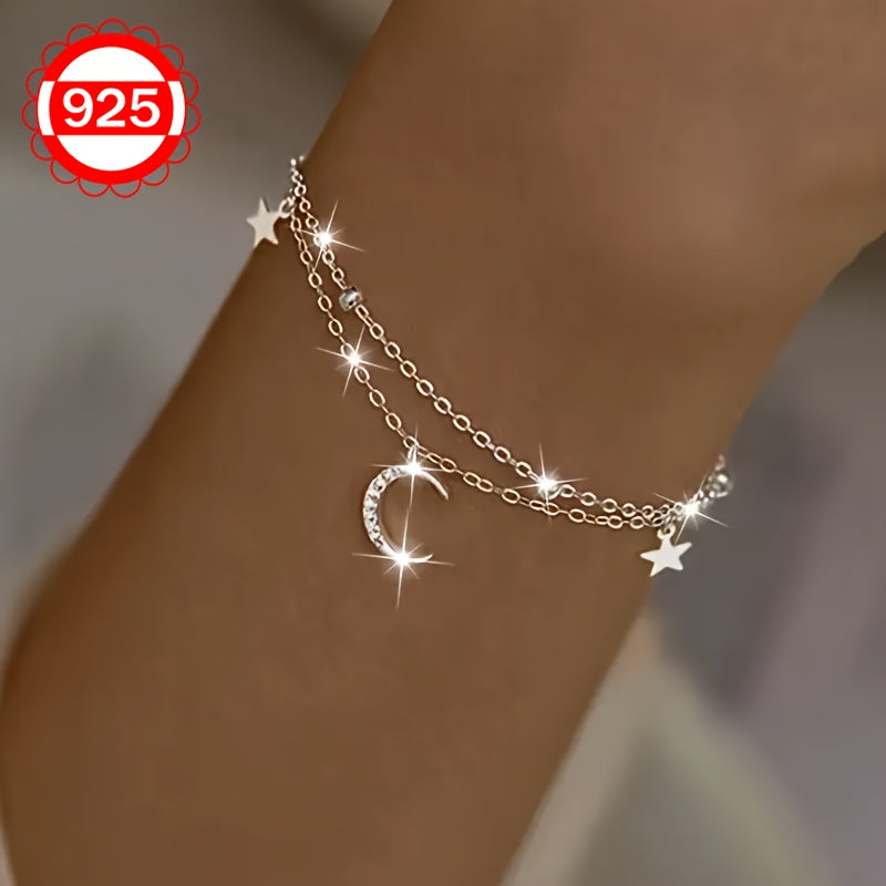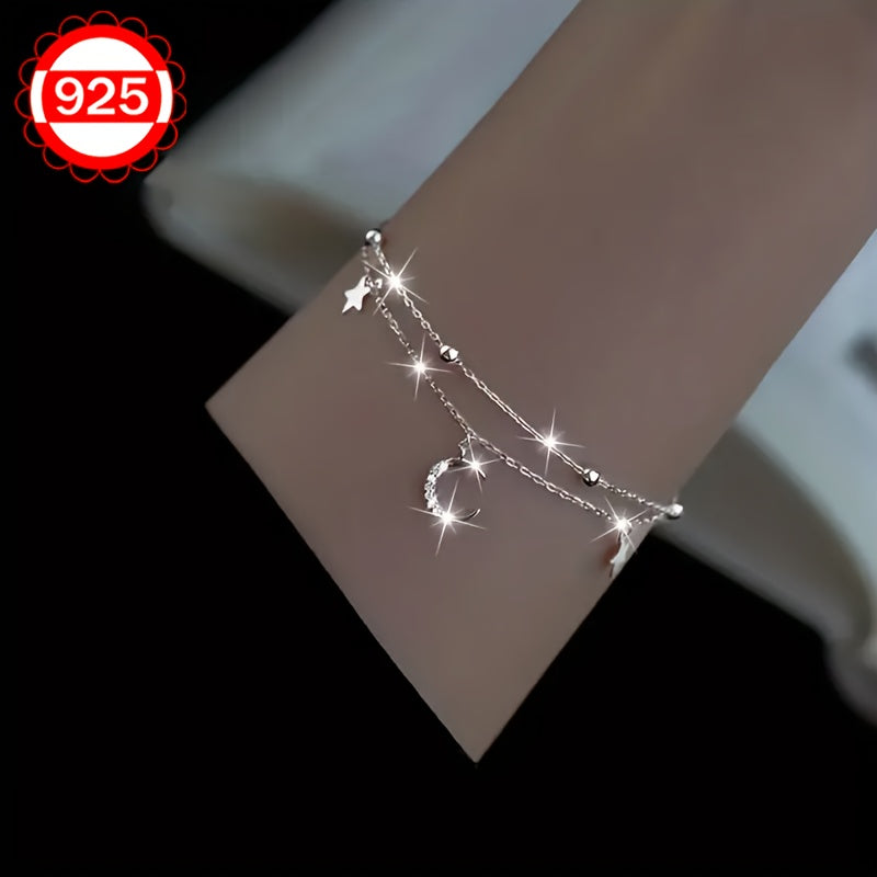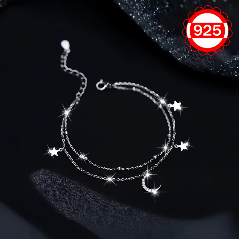 Stylish S925 Silver Double Layer Star and Moon Bracelet
