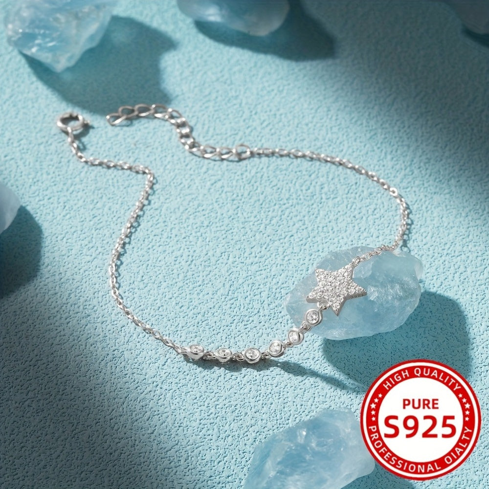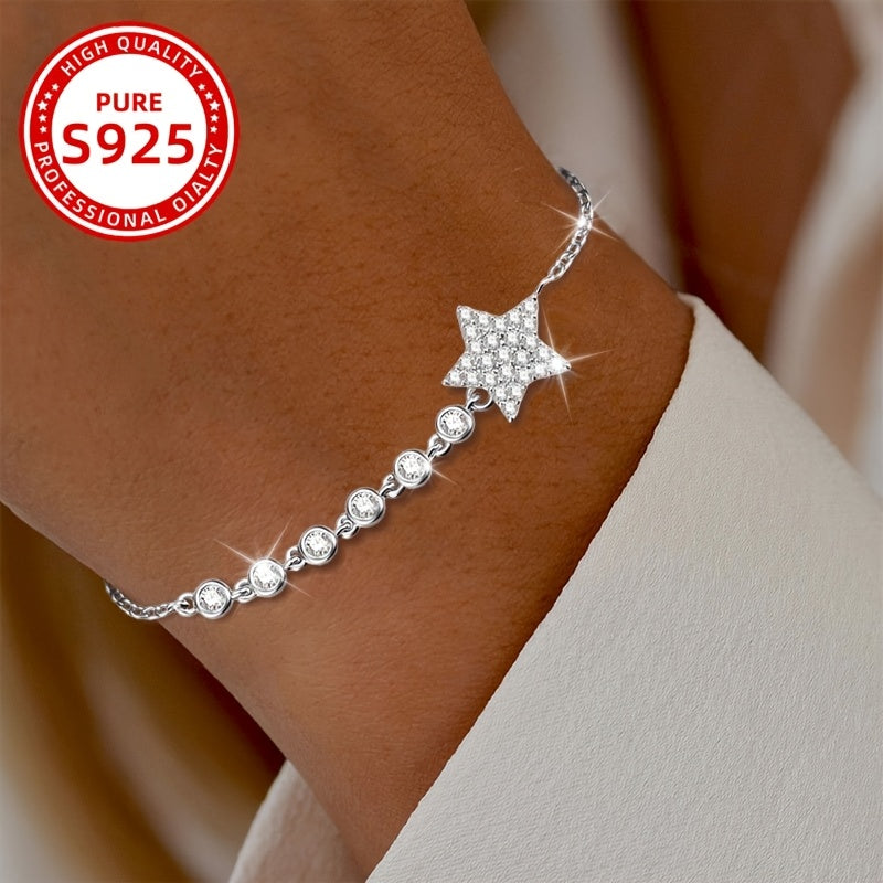 Elegant bracelet designed with a meteor charm and synthetic zirconia stones set in 925 silver. Ideal for daily wear, vacations, and parties.