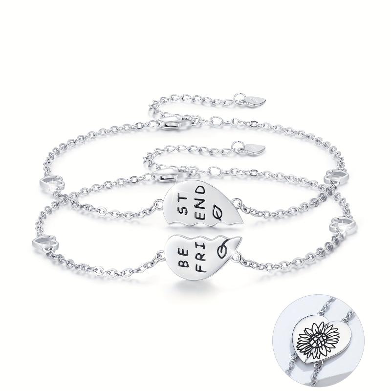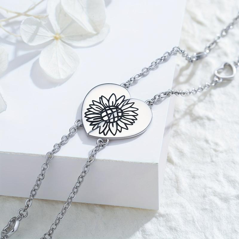 Show your friendship with this beautiful sunflower bracelet made of 925 sterling silver. The adjustable design allows for a perfect fit for you and your BFF. Ideal for women, girls, and friends who love flower jewelry.