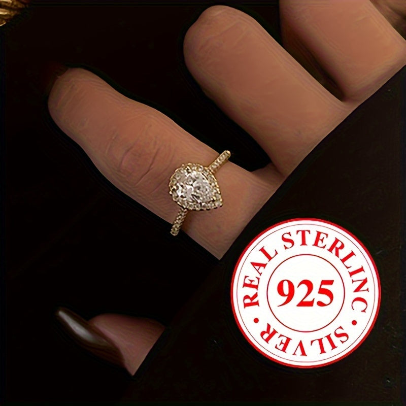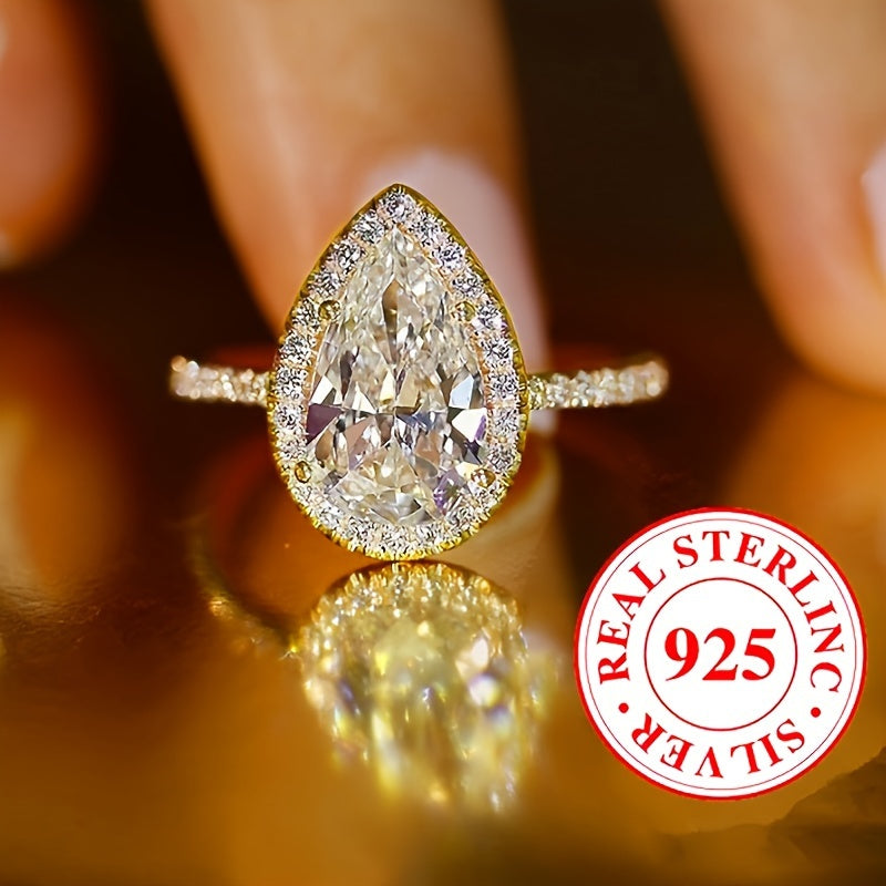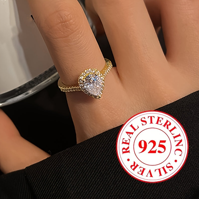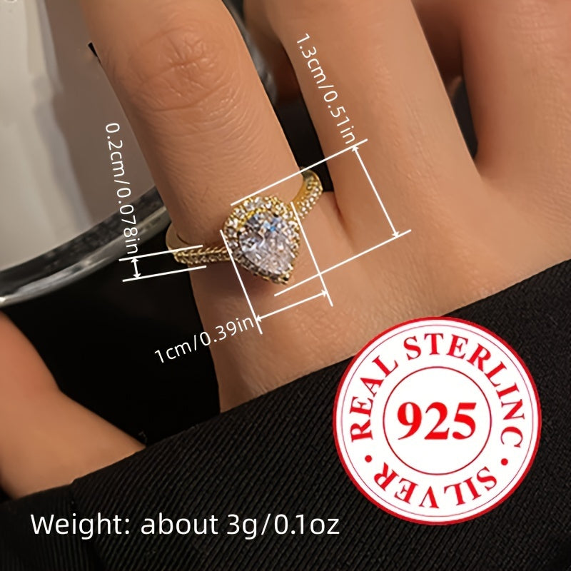 Teardrop CZ Engagement Ring 925 Silver Sparkling Stone Wedding Proposal Jewelry