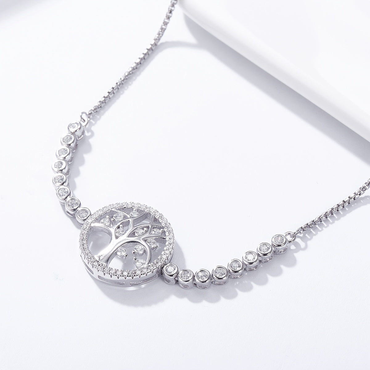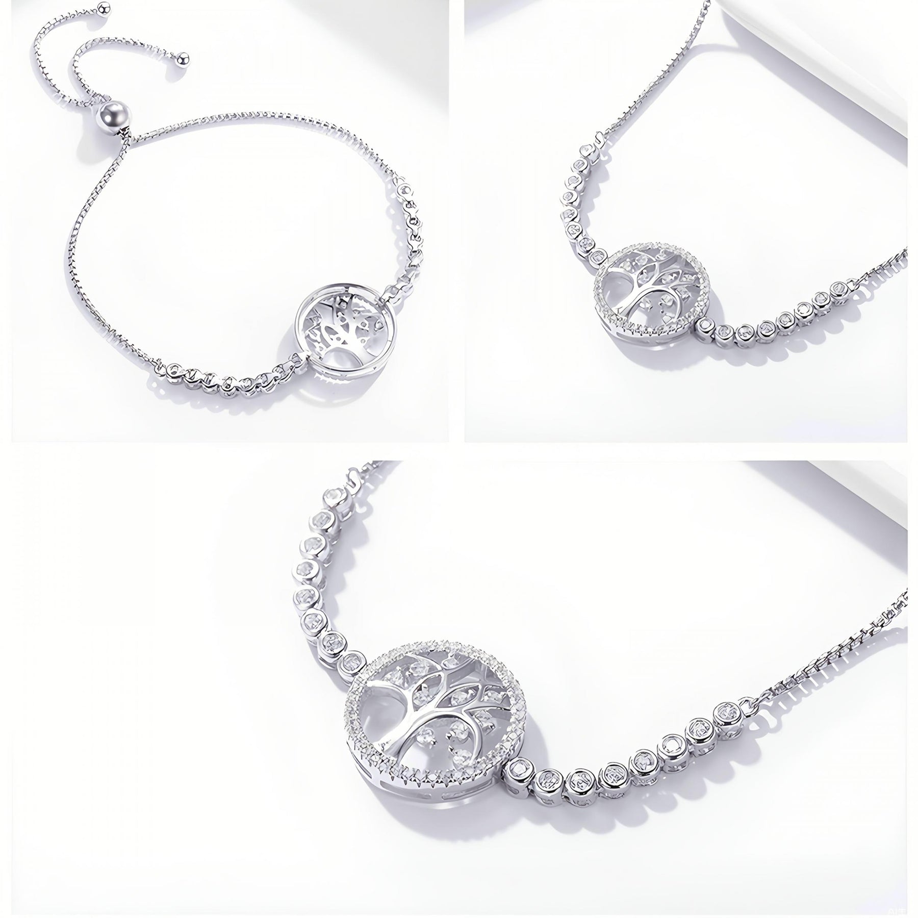 This bracelet features a stunning Tree of Life design crafted from pure S925 silver, a symbol of growth and strength.