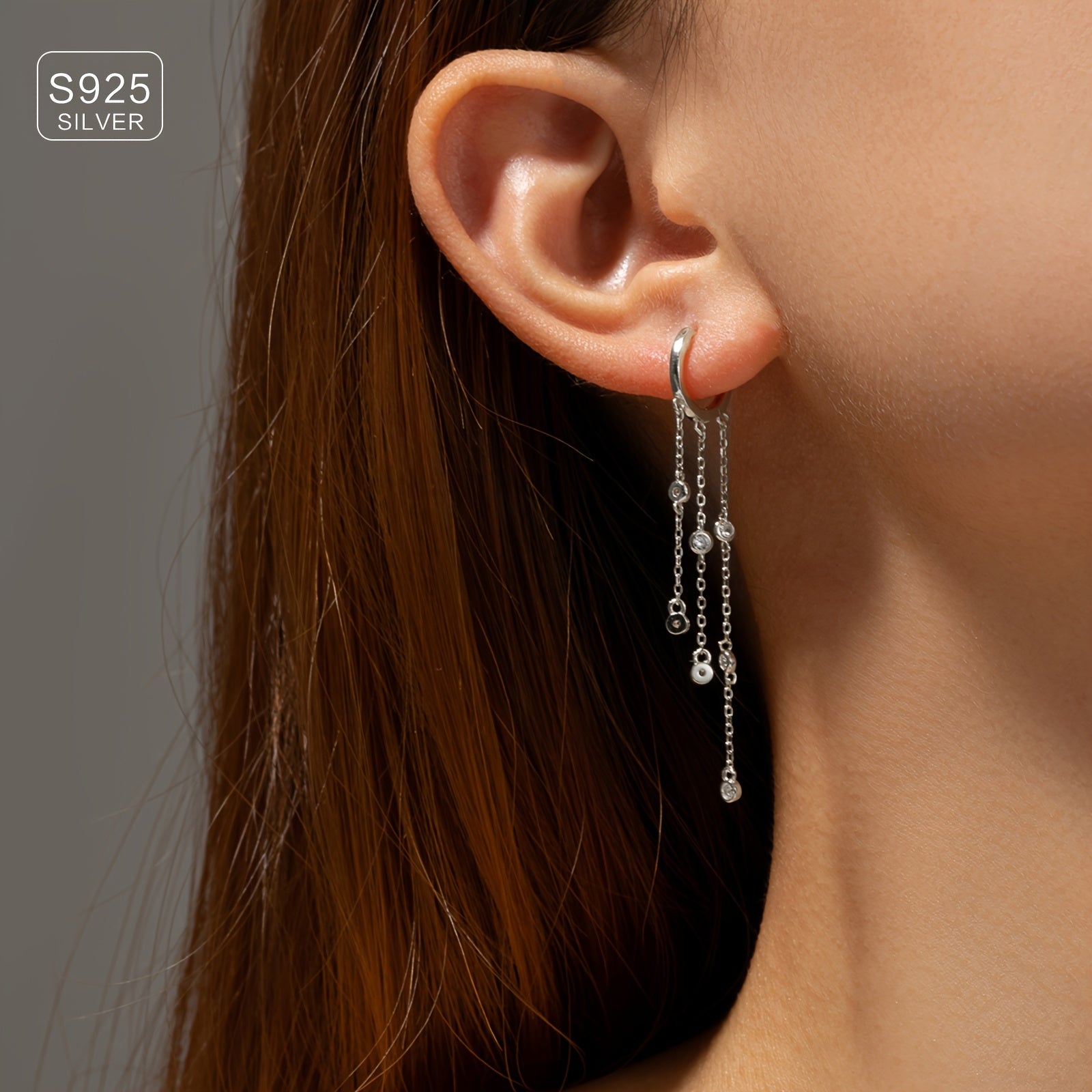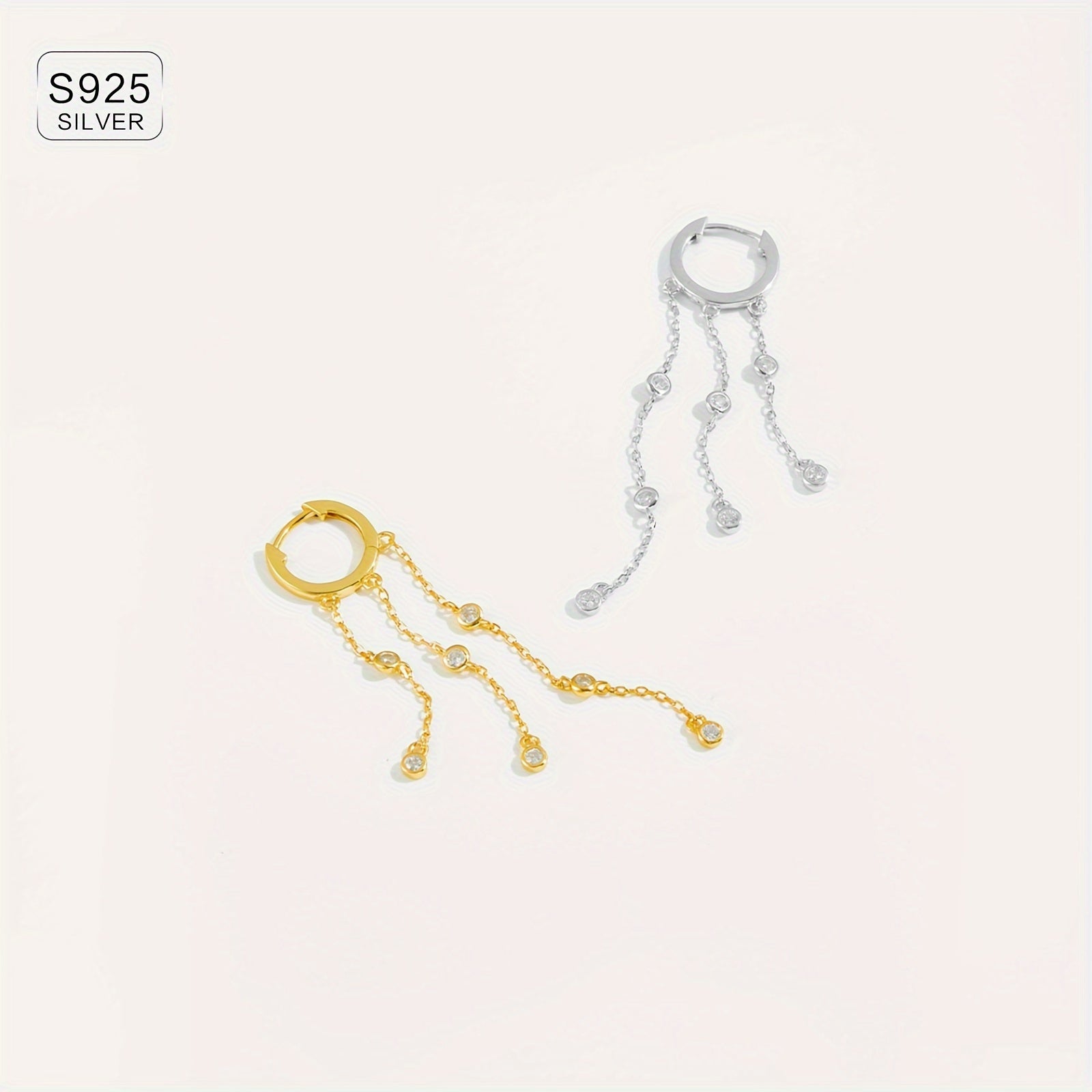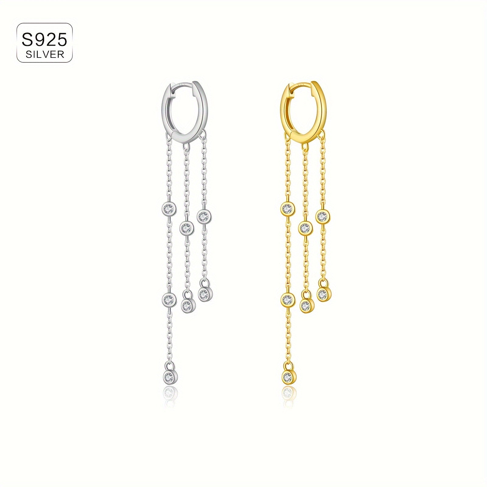 Elevate your style with these elegant drop earrings featuring a tassel design. Crafted from 925 sterling silver with synthetic zirconia for a touch of sparkle. Perfect for adding a touch of glamour to your vacation outfits.