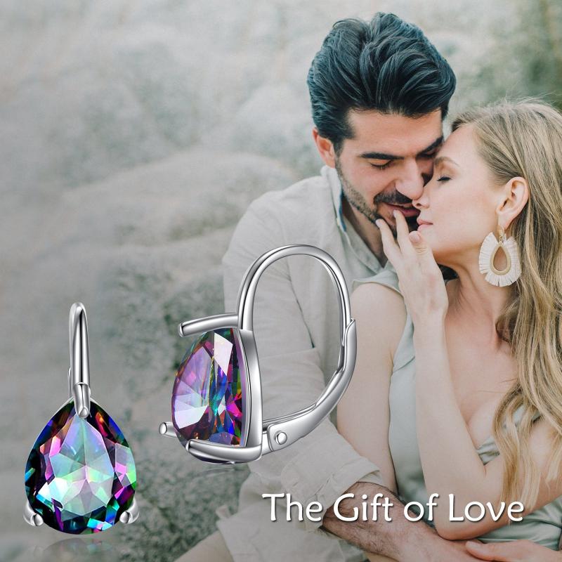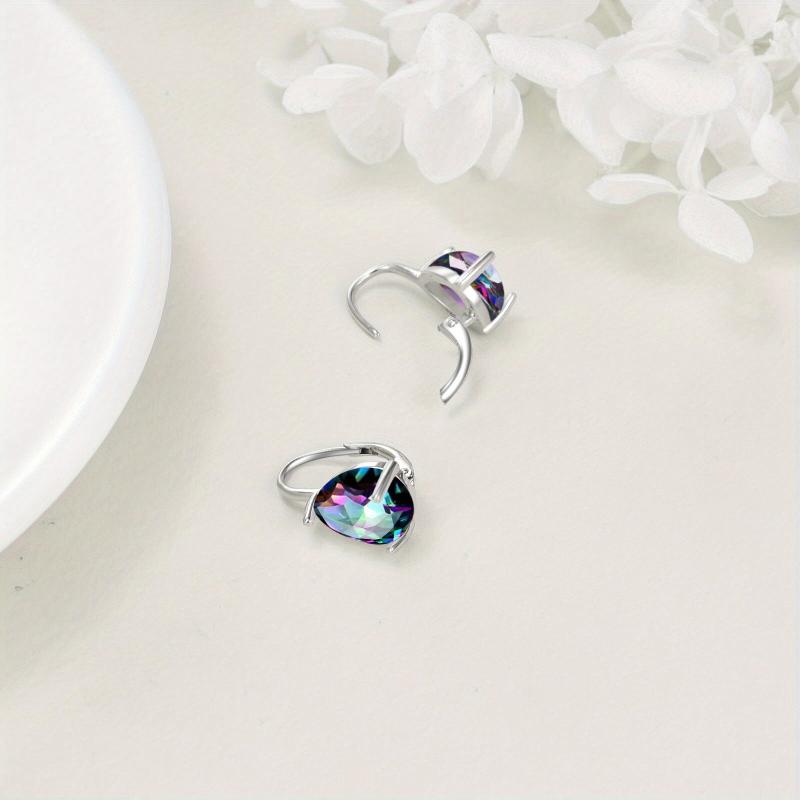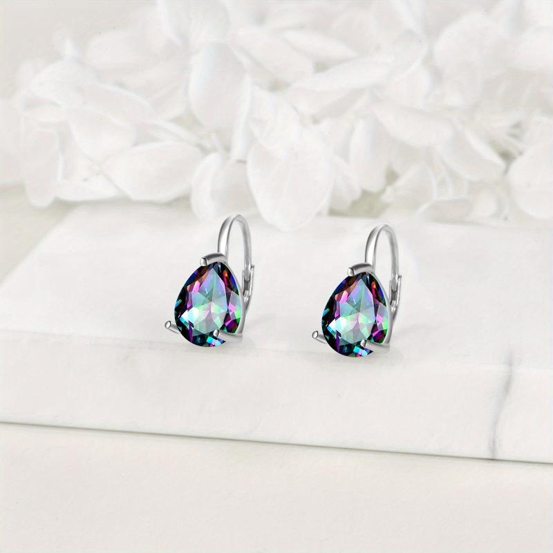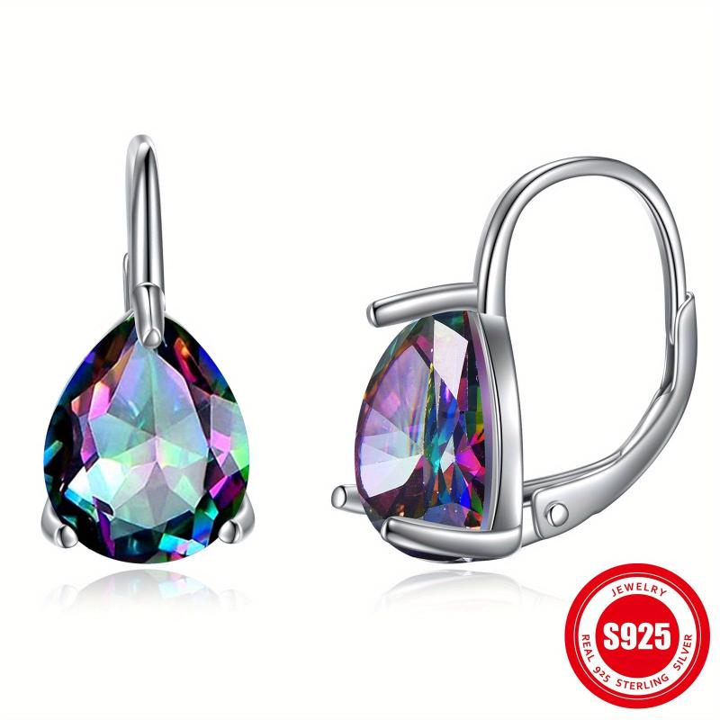 These elegant lever earrings are crafted with S925 pure silvery material and feature artificial rainbow zirconia for a stunning look.