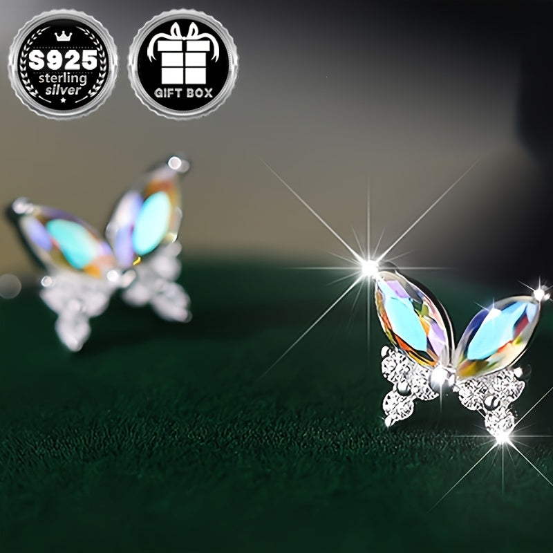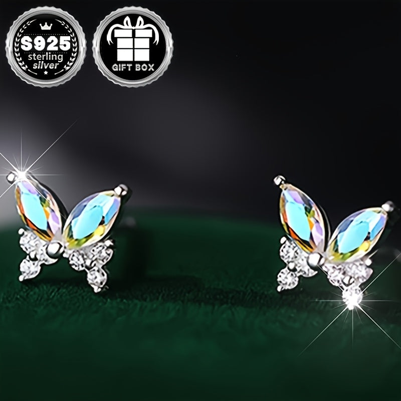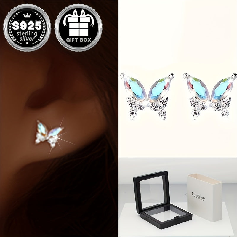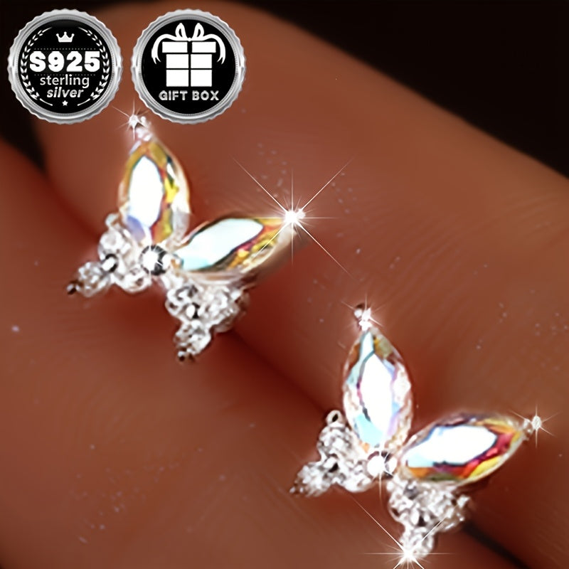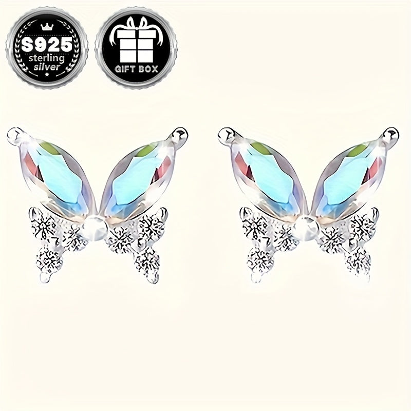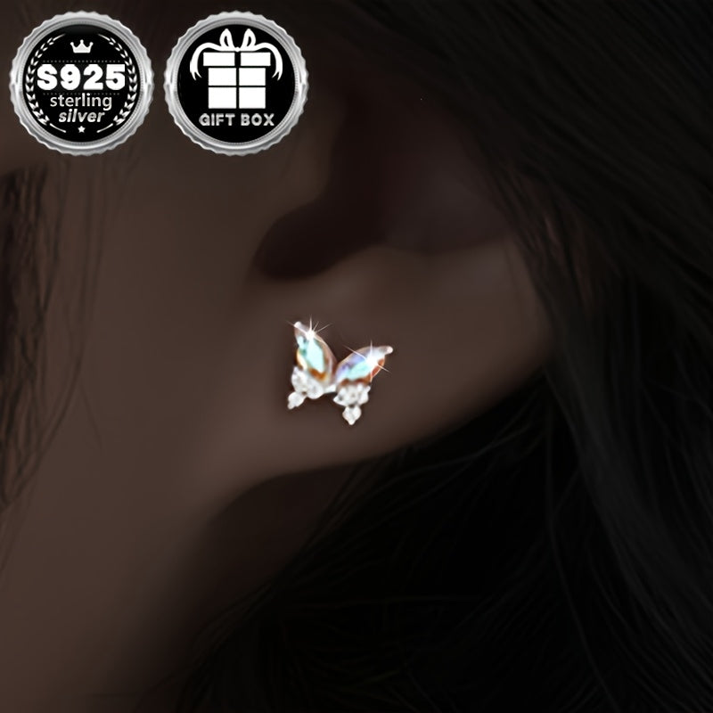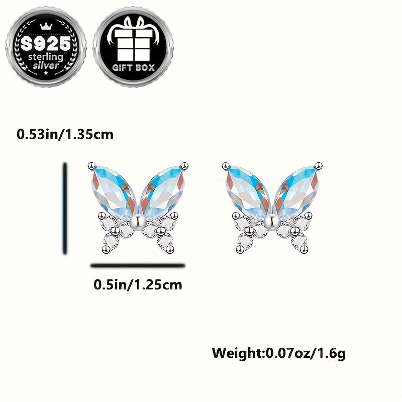 Add a touch of elegance to your look with these classic butterfly stud earrings featuring sparkling synthetic cubic zirconia. Made of high-quality 925 sterling silver, these earrings are lightweight and comfortable to wear daily.