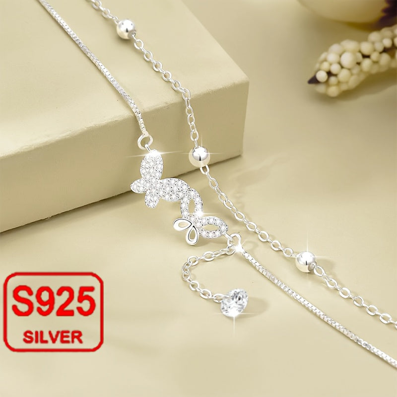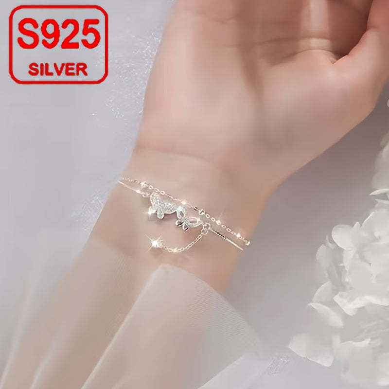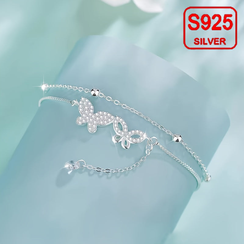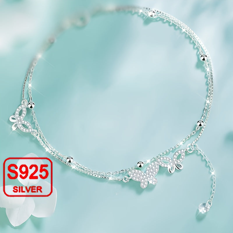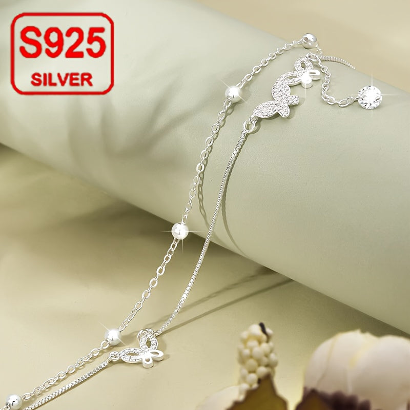 Add a touch of elegance with this high-end double layer bracelet featuring butterfly and round bead tassel design. Perfect for summer beach outings, made of 925 silver to prevent allergies.