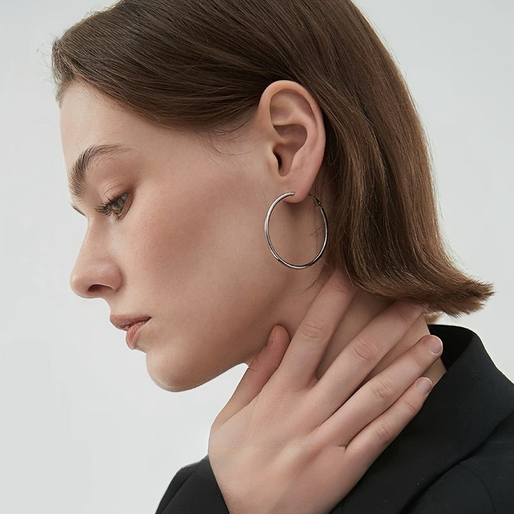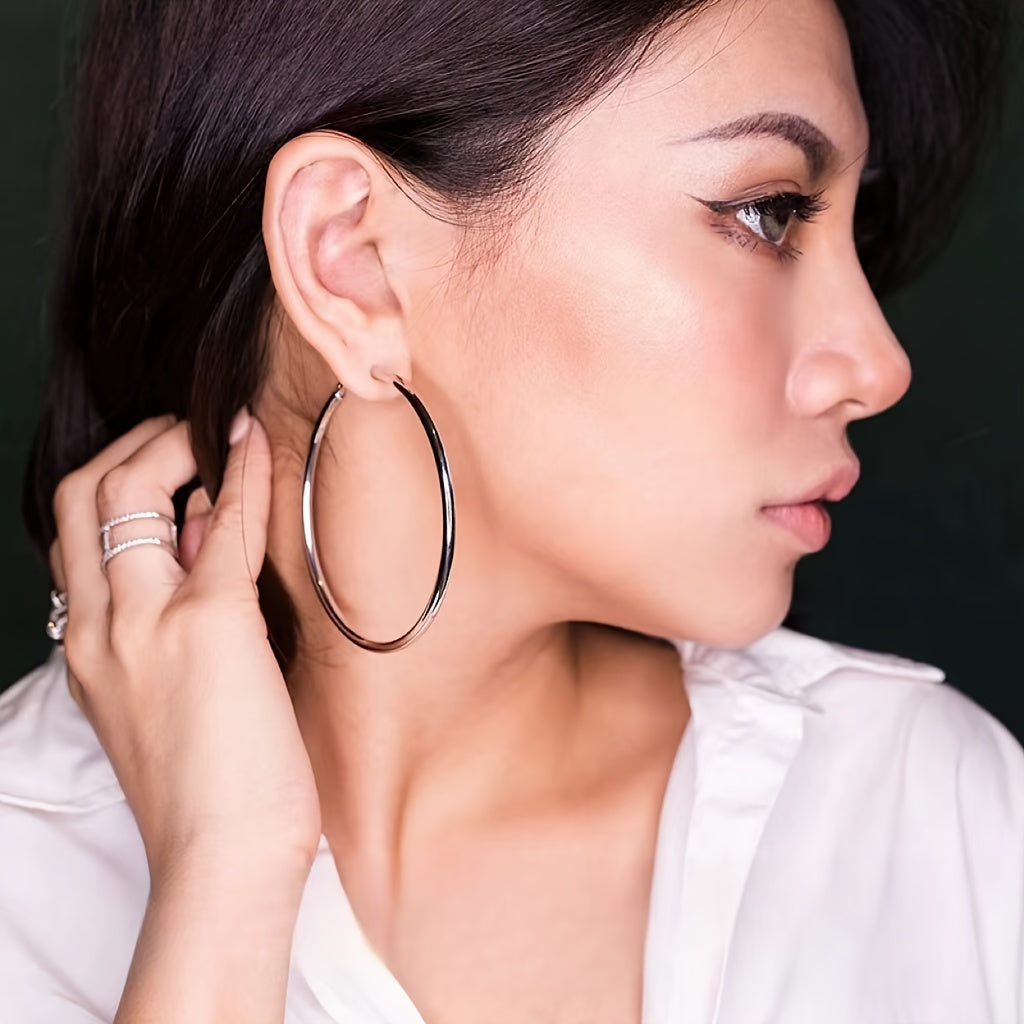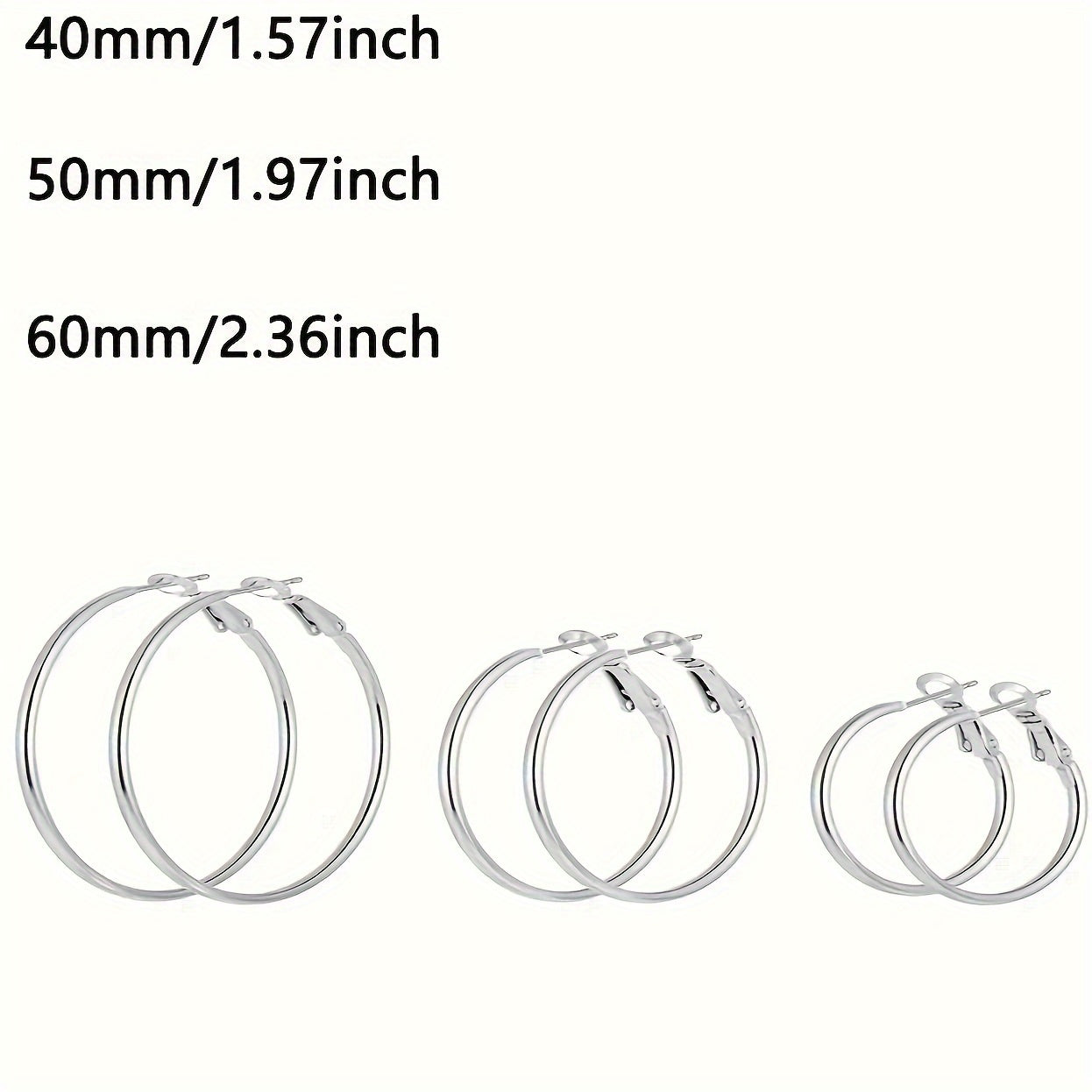 Add a touch of elegance with these silvery circle earrings that come in three different sizes - 40mm, 50mm, and 60mm. These lightweight earrings are perfect for everyday wear or special occasions.