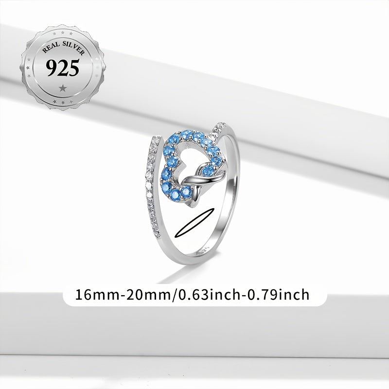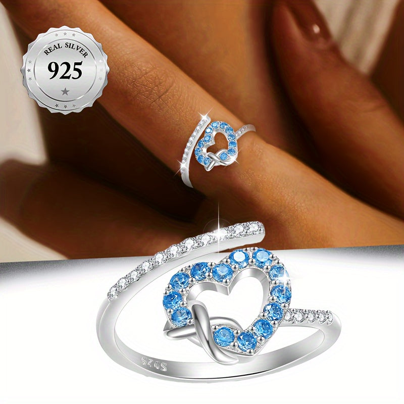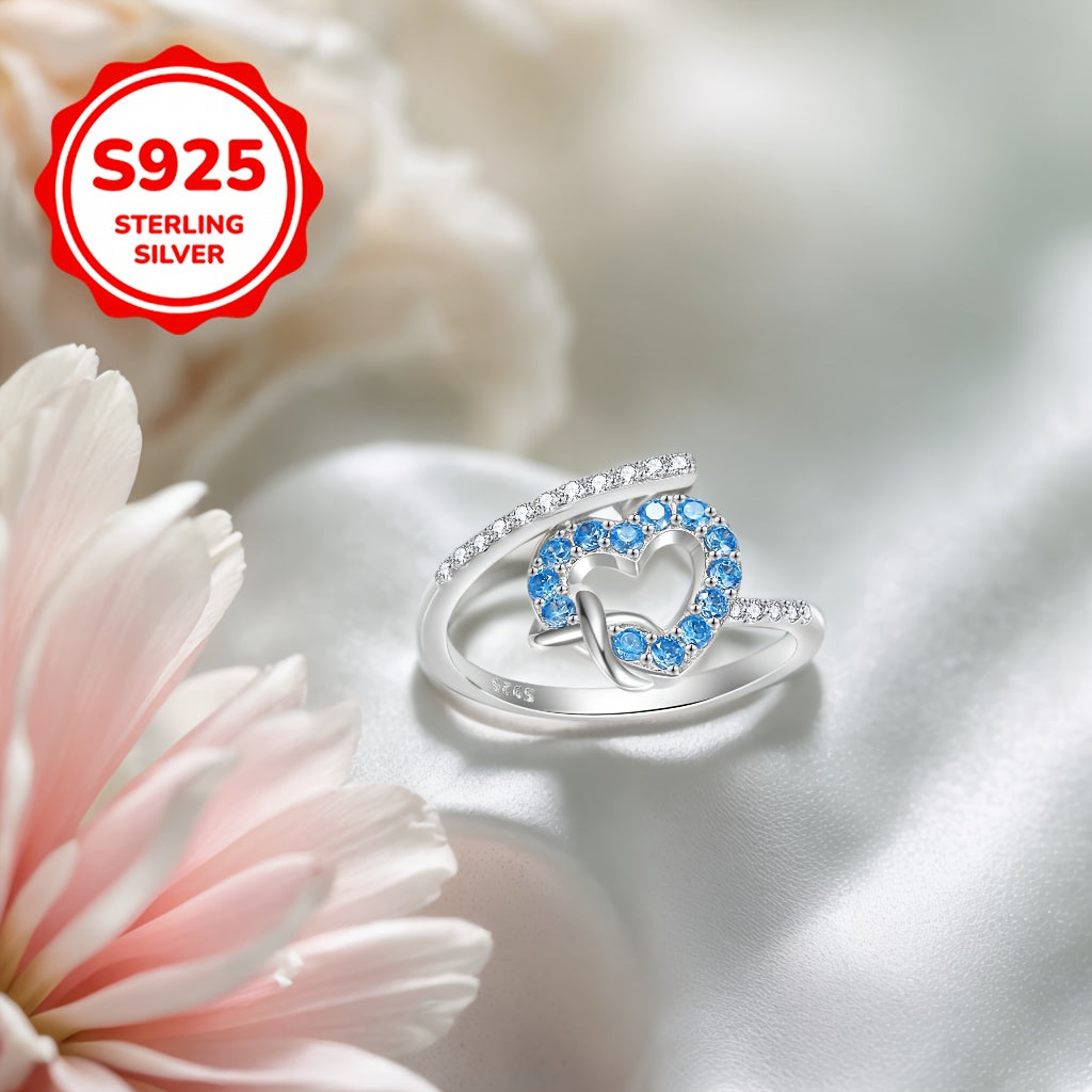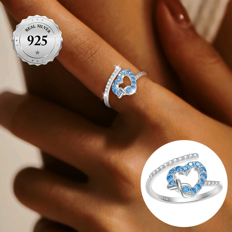 This women's open ring is a symbol of love and infinity, featuring zirconia stones set in S925 silver. Perfect for banquets, parties, or daily wear with low allergy risk.