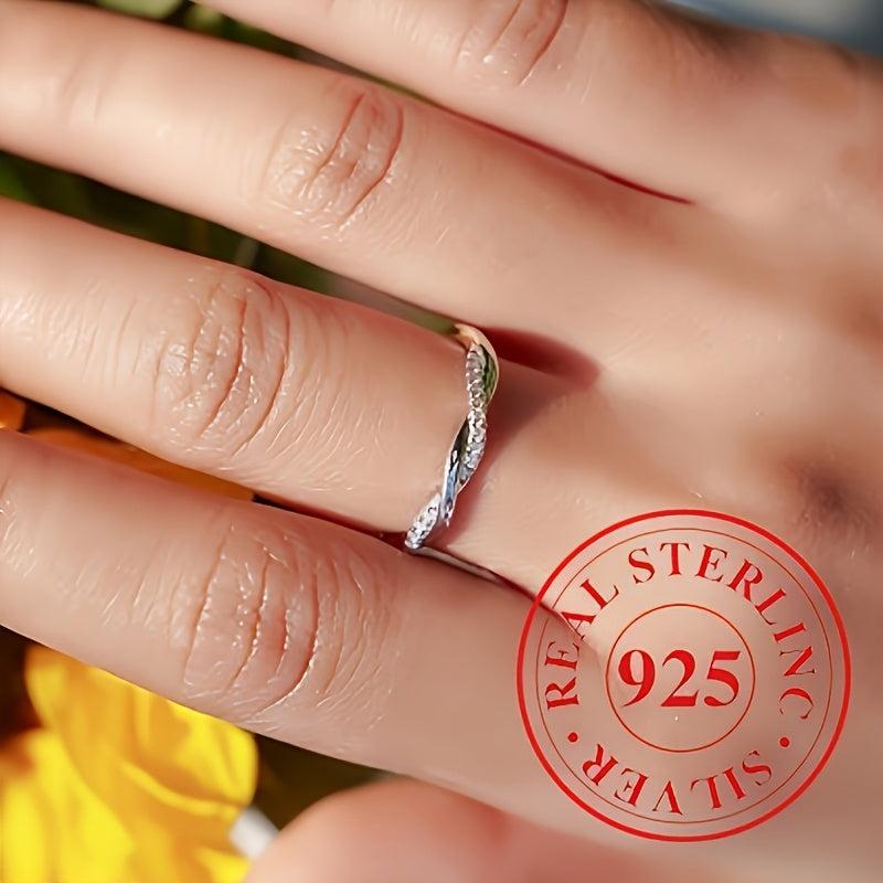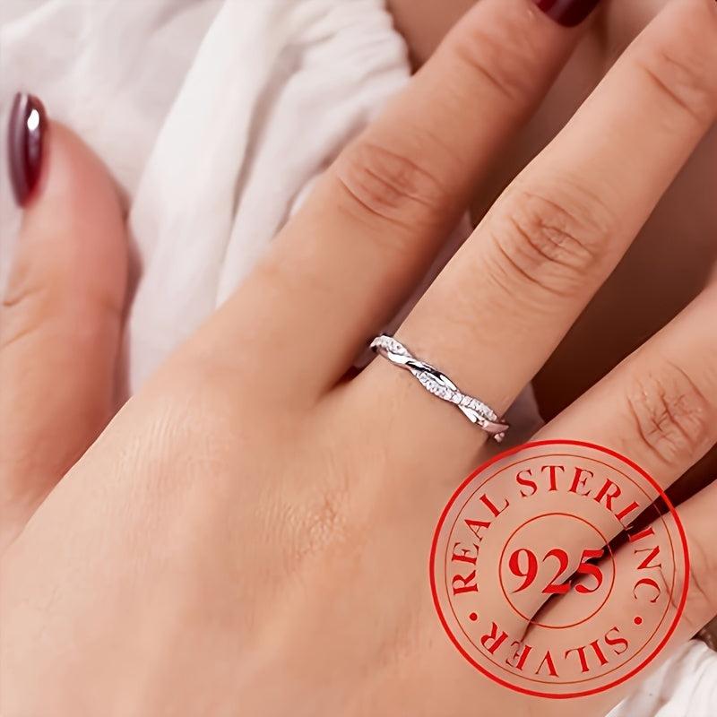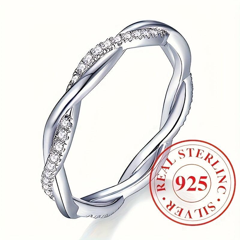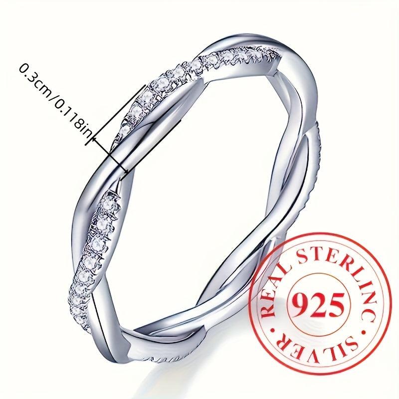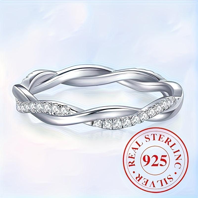 Women's Personality Ring S925 Pure Silvery Synthetic Zirconia Twist Ring