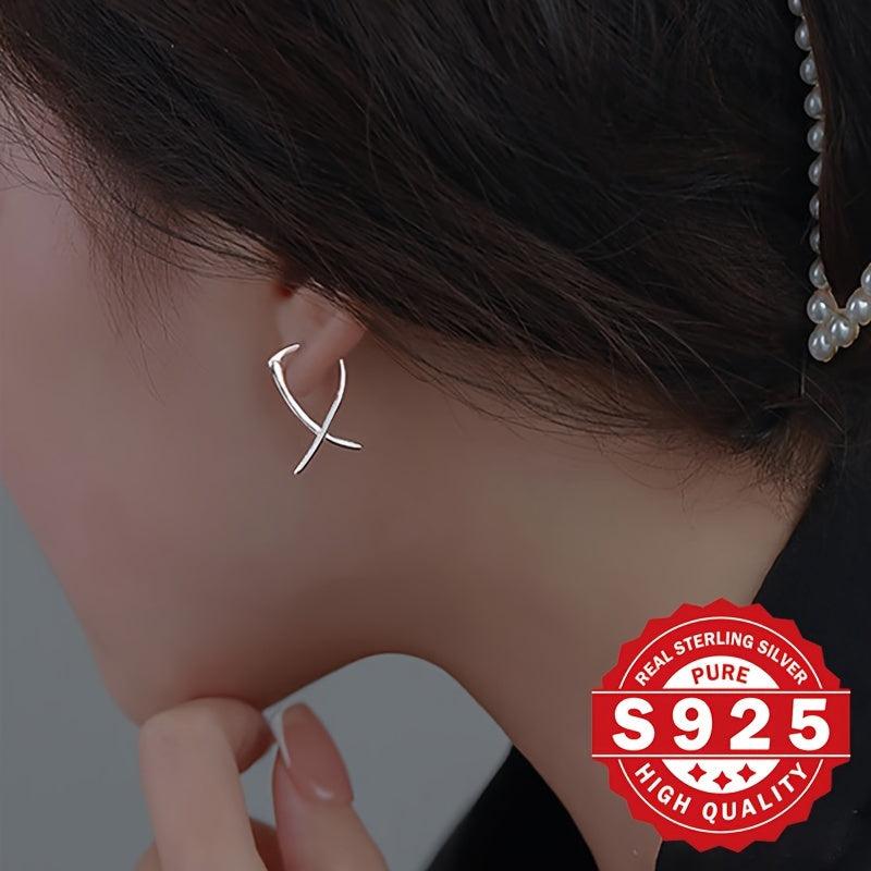 Elegant sterling silver studs featuring a cross design, perfect for daily wear. Hypoallergenic and lightweight. Makes a great gift for women.