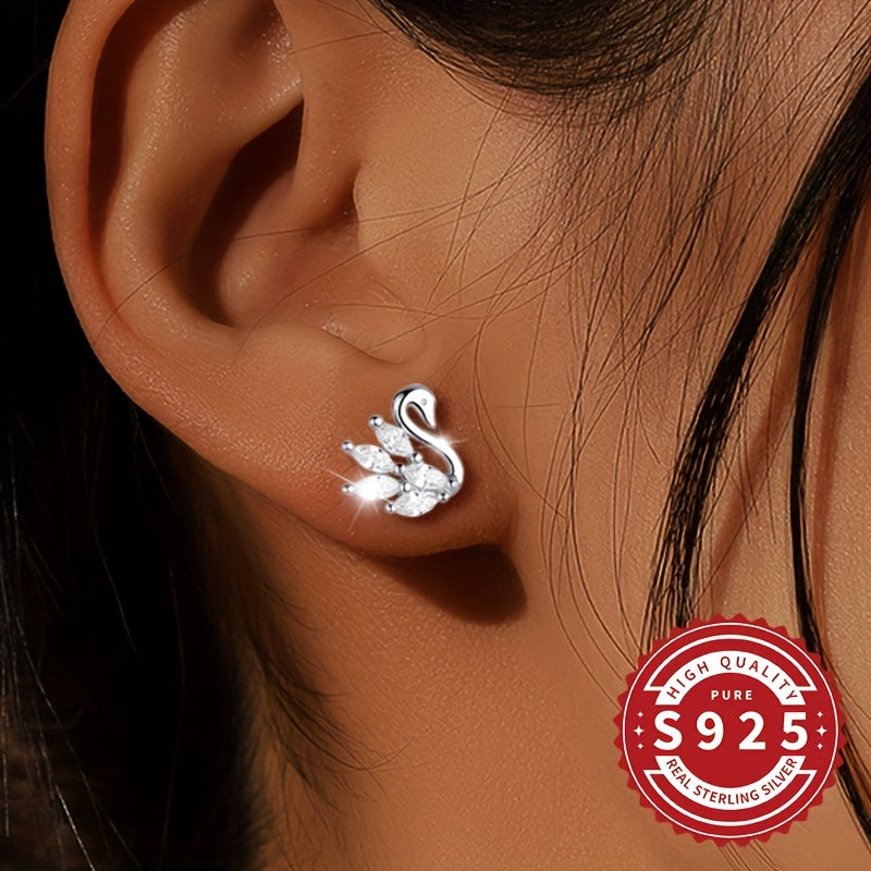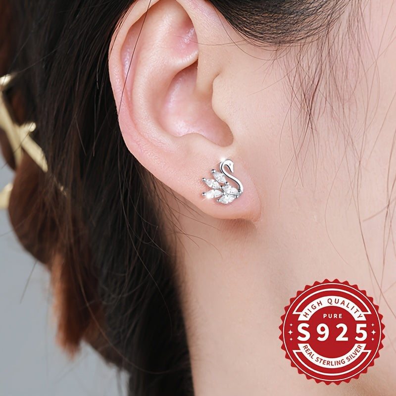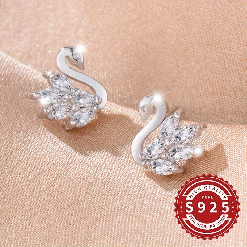 These shining little swan earrings are made of S925 pure silver, perfect for daily casual wear. They are low-allergy and suitable for women on Thanksgiving.