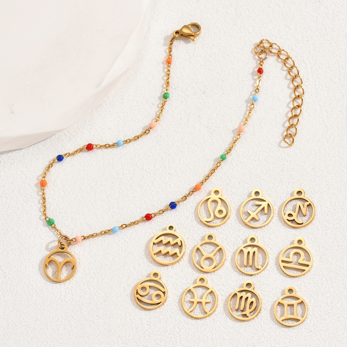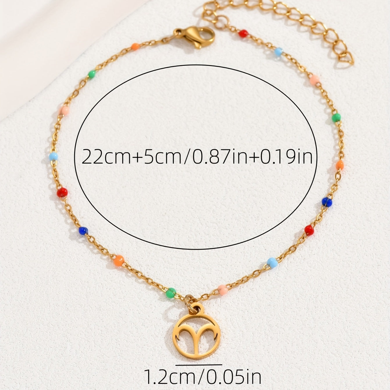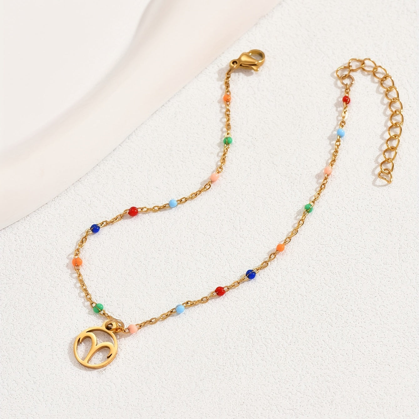 This ankle bracelet features 12 constellation pendants on a thin chain with colorful mini beads. It adds a touch of celestial charm to your look.