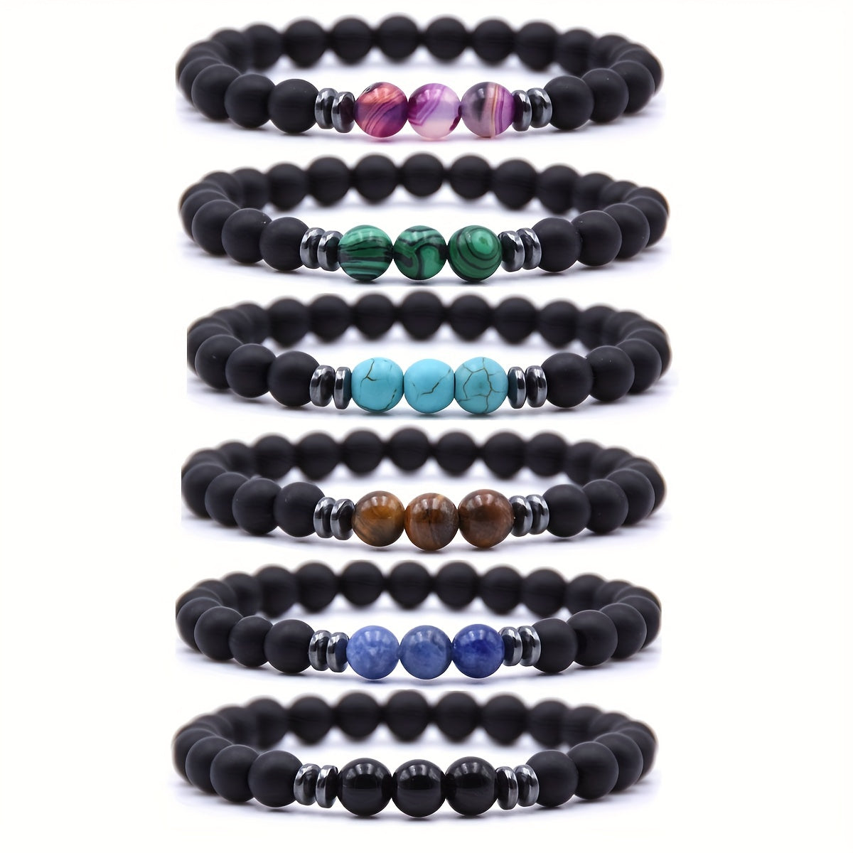 This bracelet is made of frosted and mixed stone beads, perfect for couples.