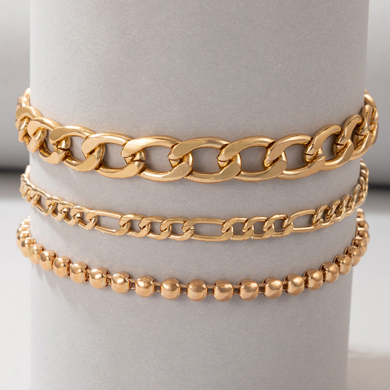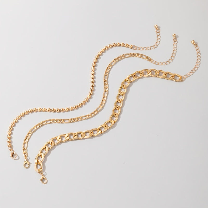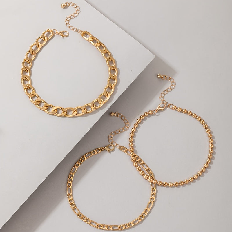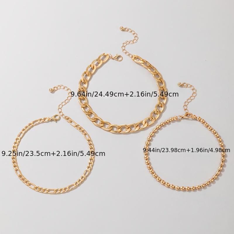 Elevate your style with this 3-piece ankle bracelet set featuring colorless design. The anklets are made of high-quality metal and are adjustable to fit various ankle sizes.