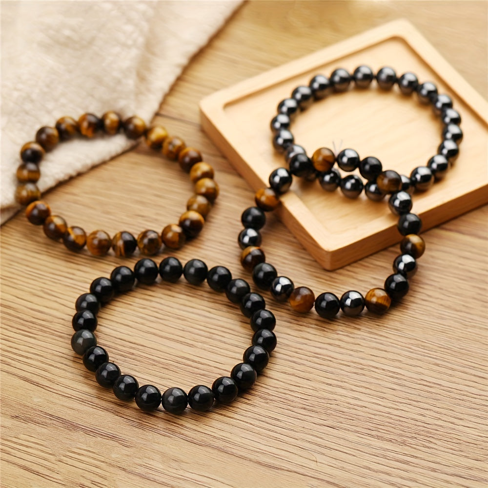 Elevate your style with this set of 4 classic hematite bracelets. Perfect for daily wear or special occasions.