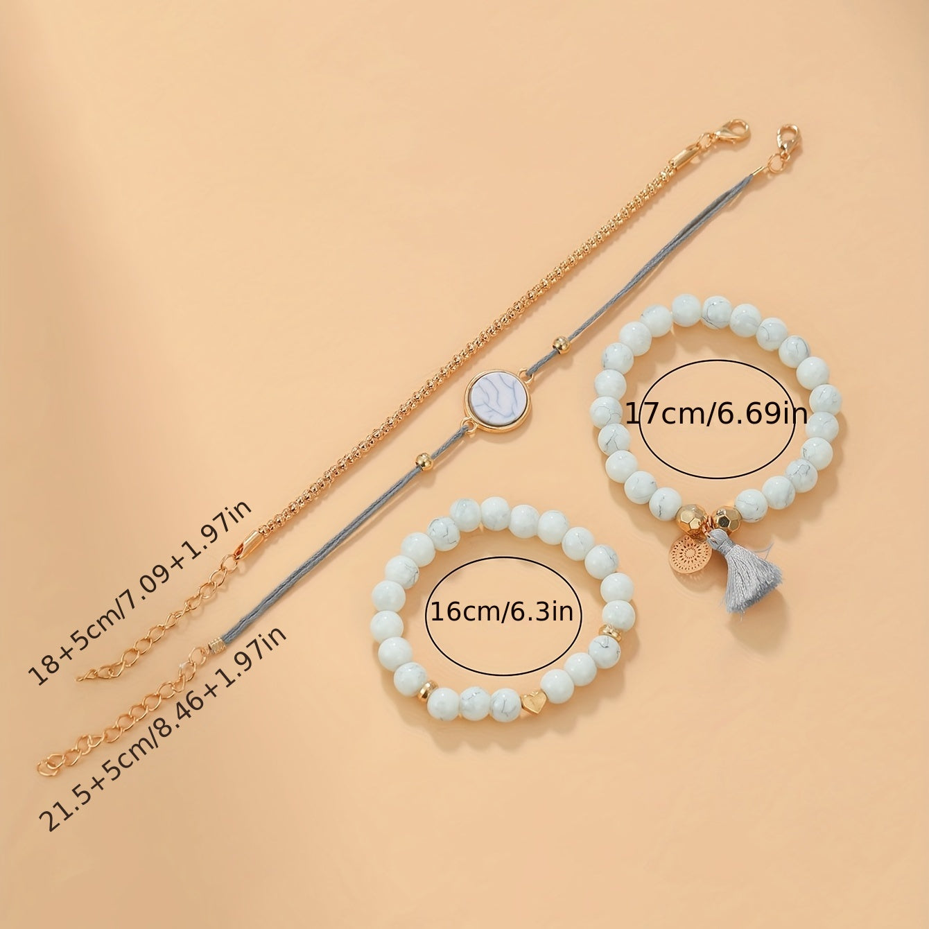 Enhance your boho look with this set of 4 turquoise tassel bracelets. Perfect for adding a pop of color to your outfit.