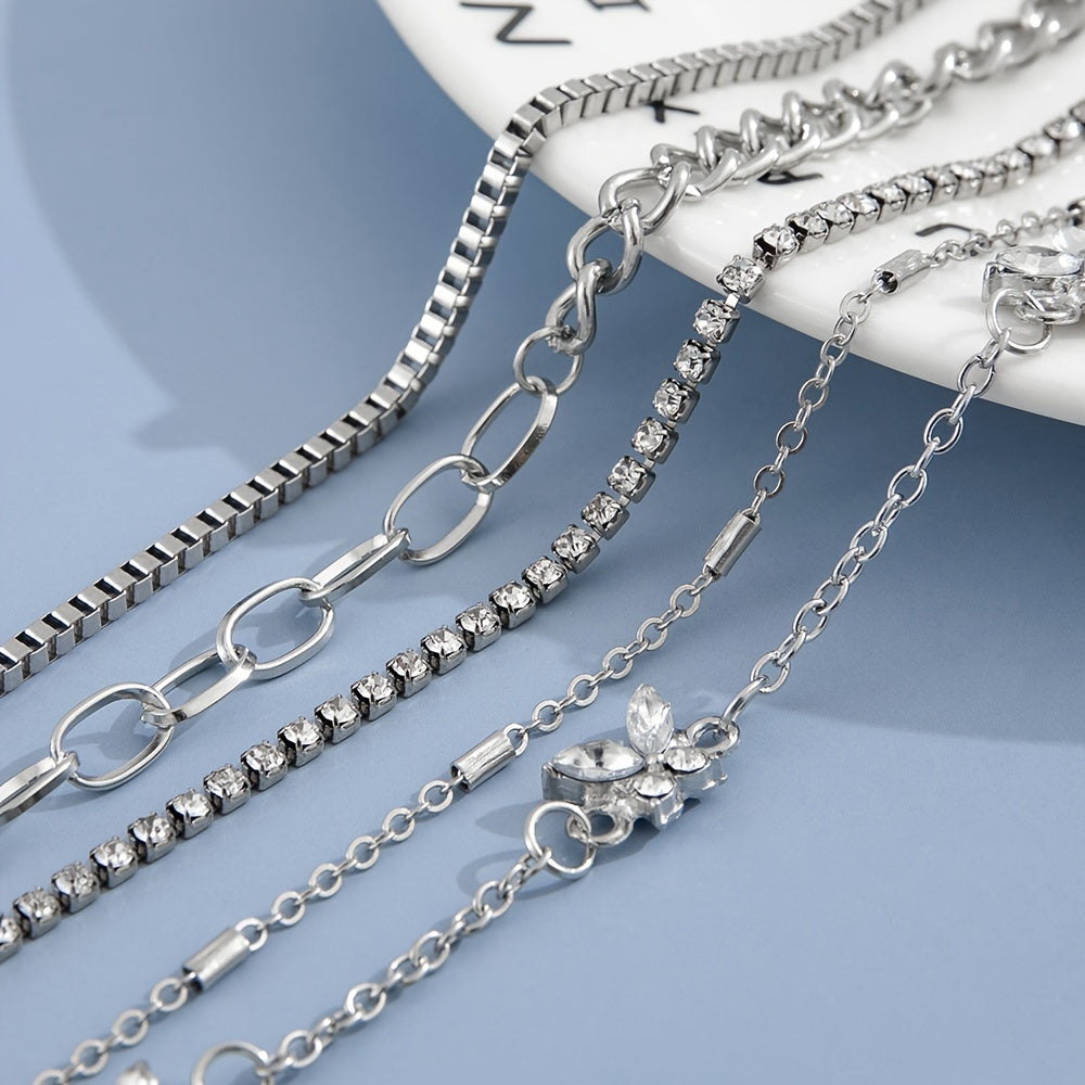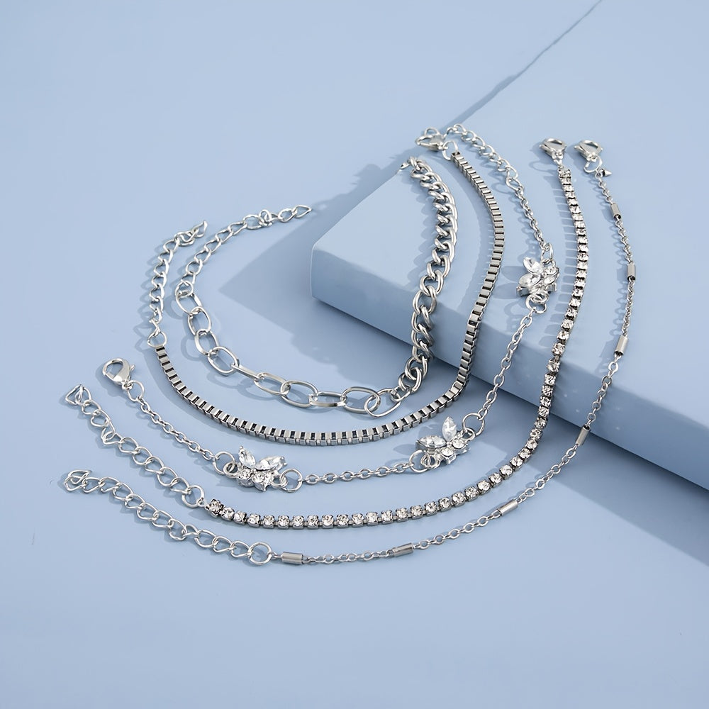 This set includes 5 chain bracelets with inlaid zircon stones, perfect for adding a touch of elegance to your outfit. The adjustable design ensures a comfortable fit for women and girls.