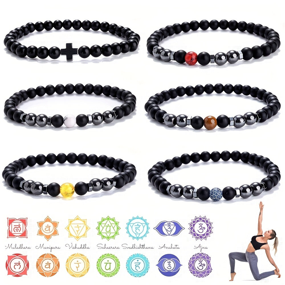 Enhance your yoga practice with this beautiful 6mm Matt Stone Chakra bracelet designed for women. The chakra stones promote balance and harmony.