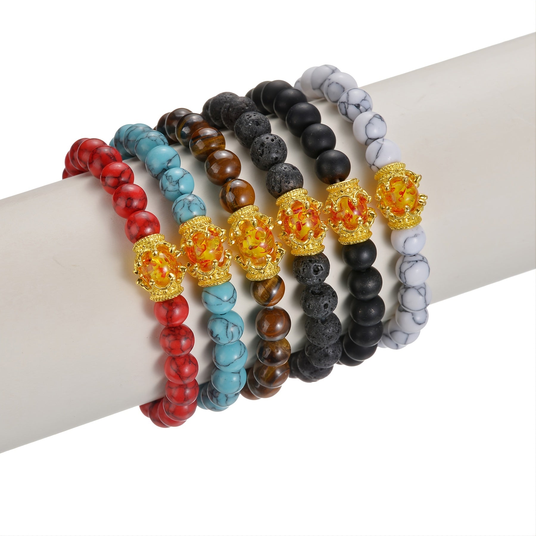 8mm Healing Stone Beaded Bracelet For Men Natural Crown Bracelets