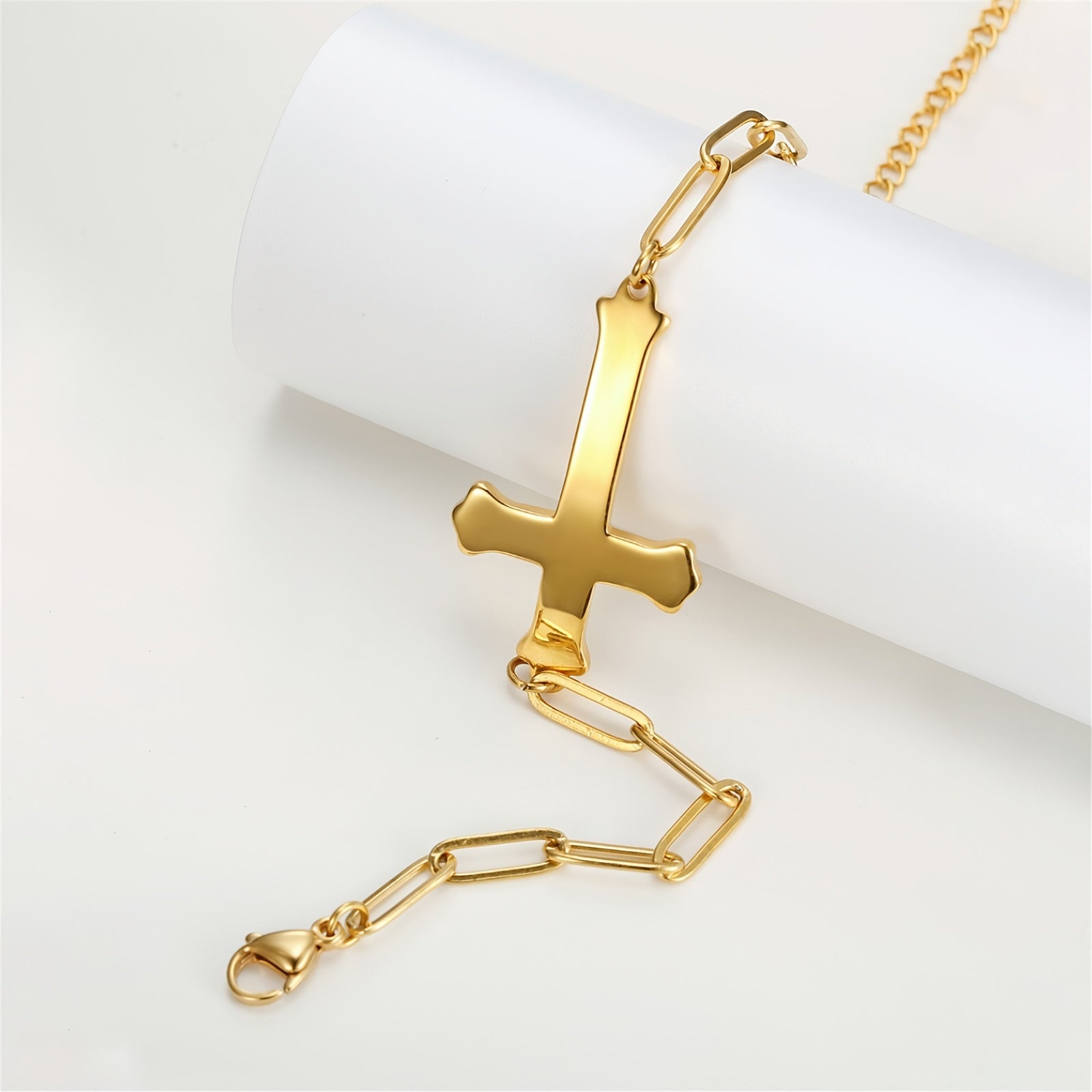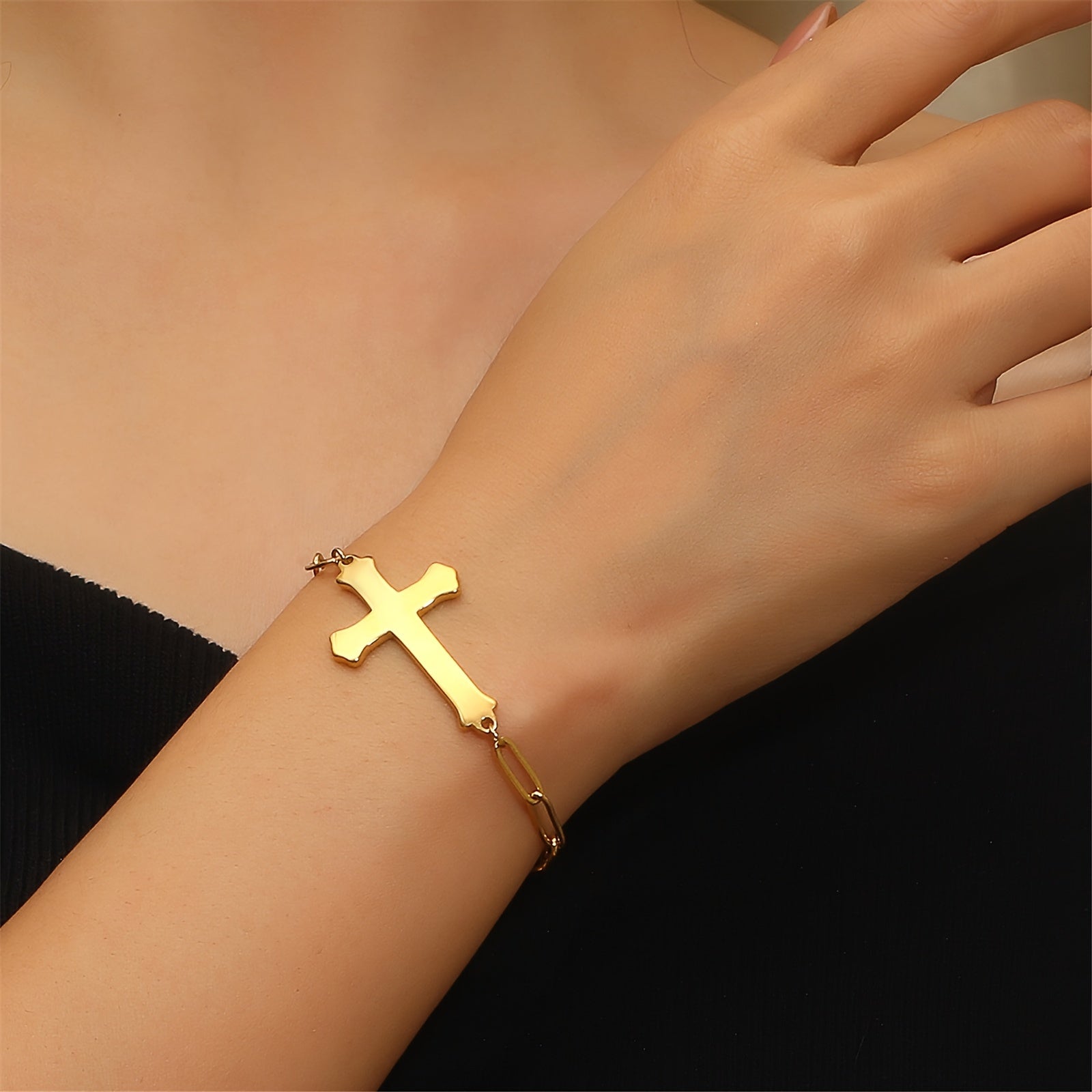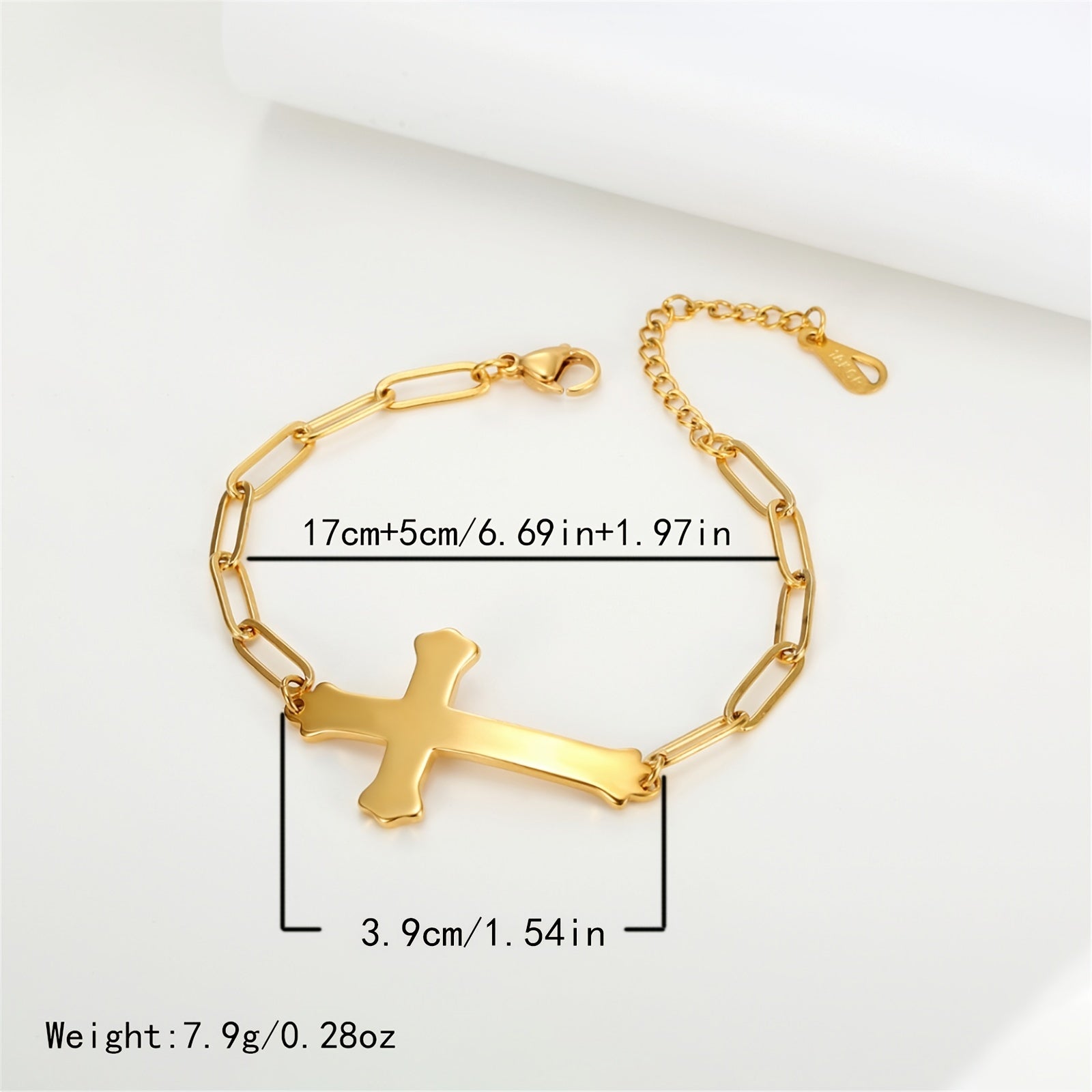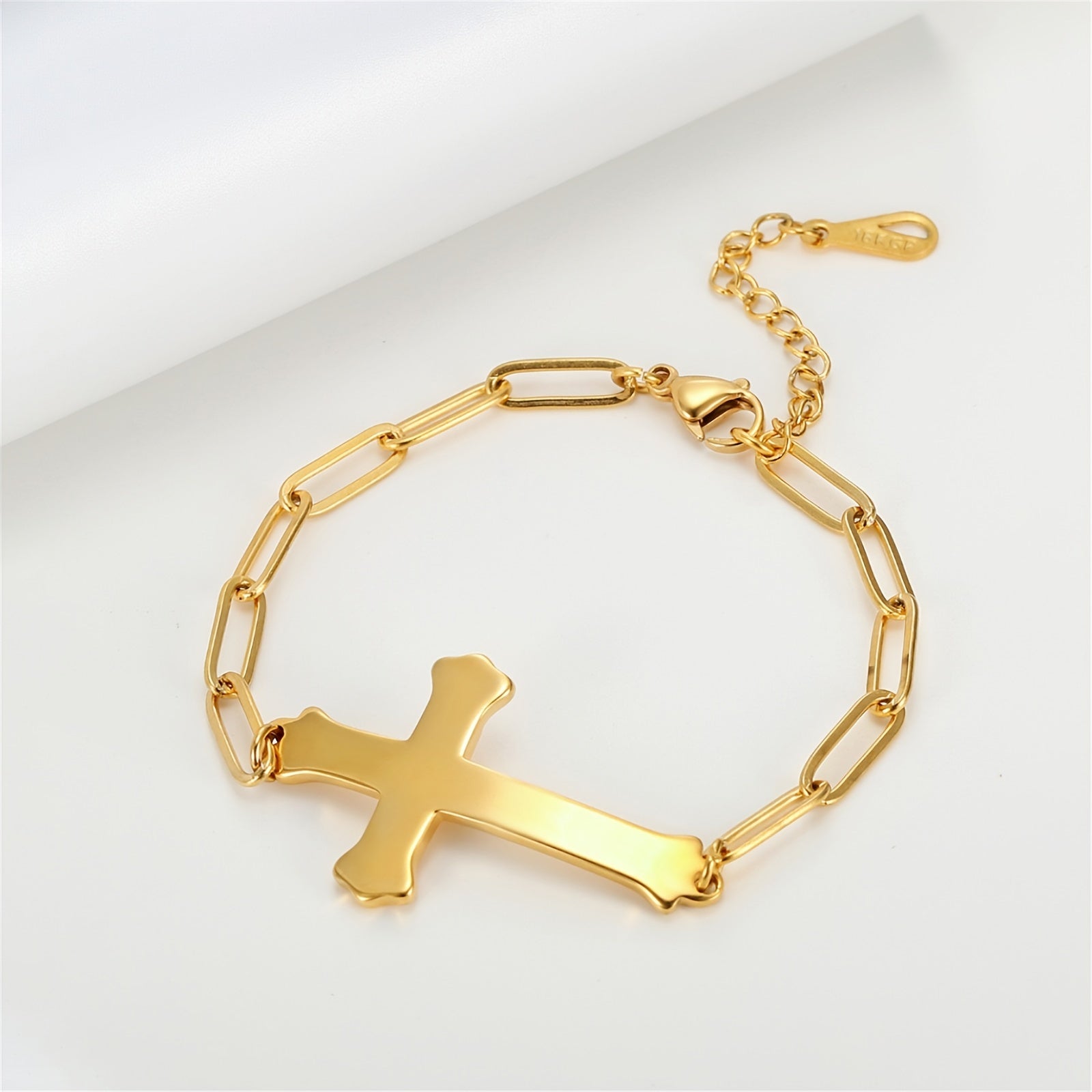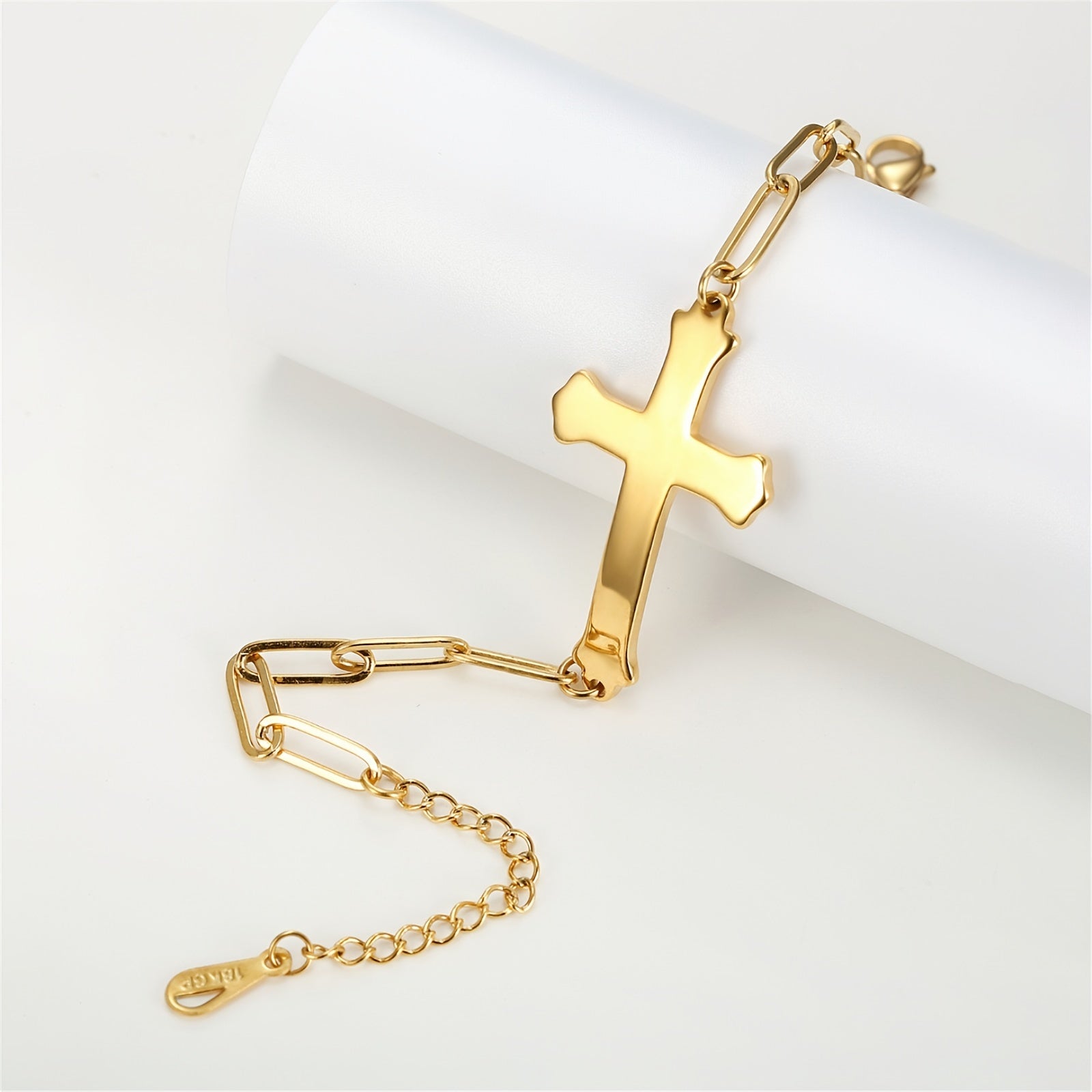 Elegant cross shape bracelet made of high-quality 18K plated stainless steel, perfect for women and teen girls.
