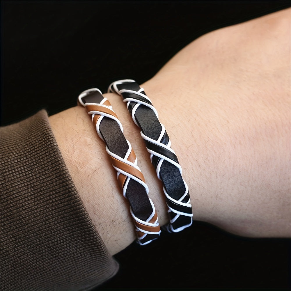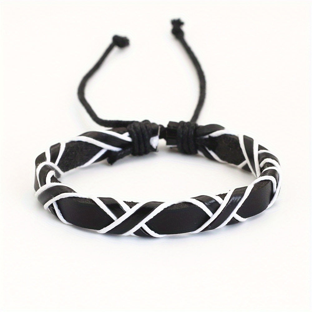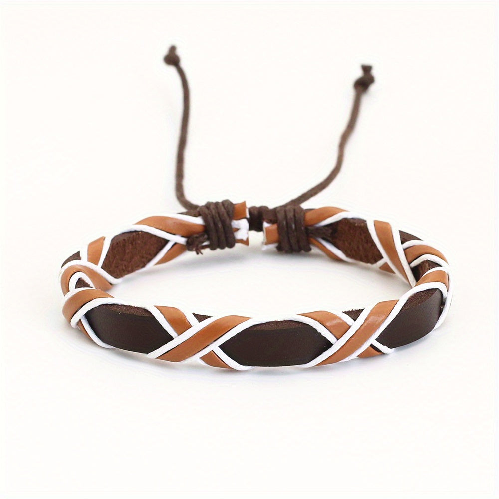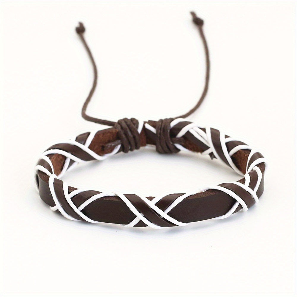 This retro bracelet is crafted from high-quality leather with an adjustable design, perfect for casual wear.