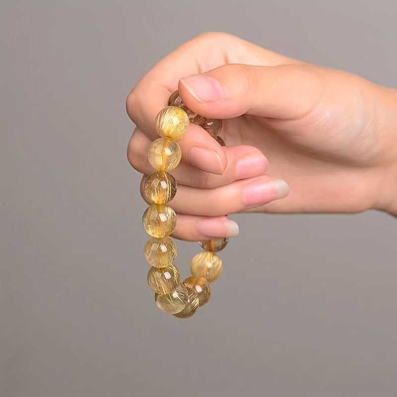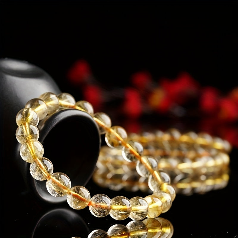 Natural quartz healing bracelet with citrine round beads. Ideal for women and men, brings luck and positive energy.