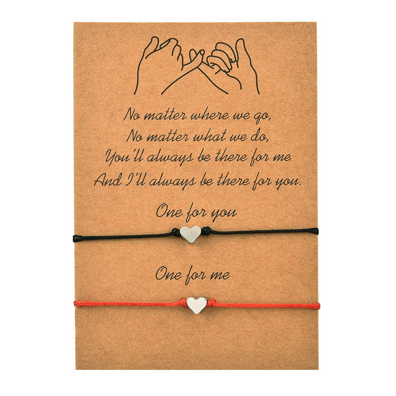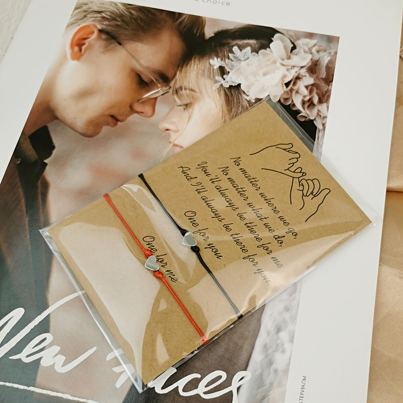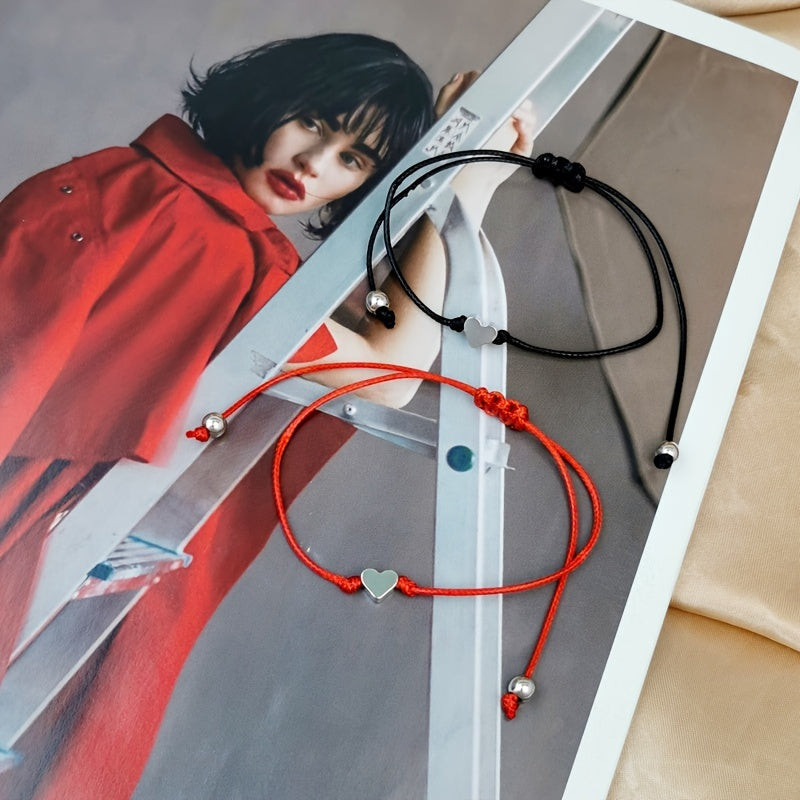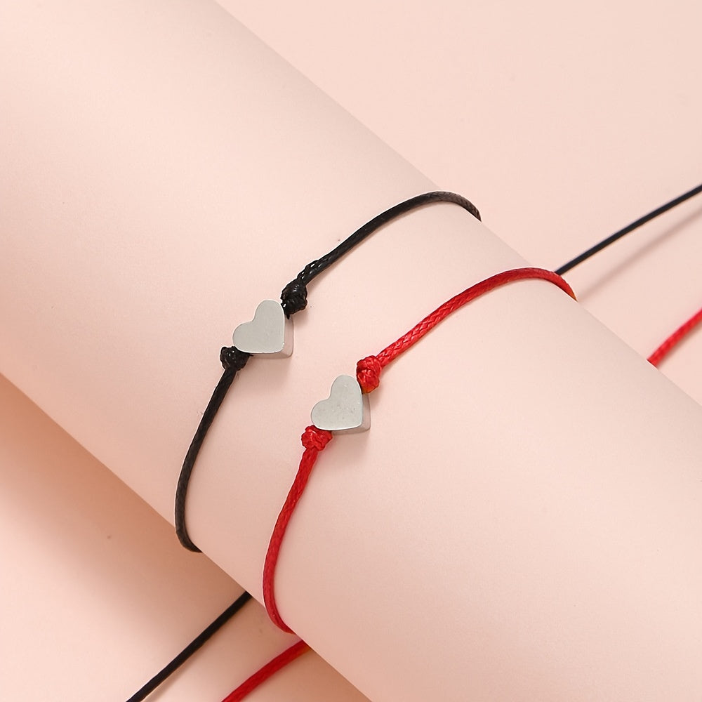 Get this stylish pair of couple bracelets made of alloy with heart-shaped design and wax thread braiding for a unique look.